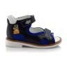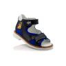 Босоножки ортопедические Woopy orthopedic темно-синего цвета с ярко-синими вставками. Фиксируются двумя липучками. Снаружи кожа + нубук, внутри кожа. Высокая твердая пятка, супинатор и ортопедический каблук Томаса.