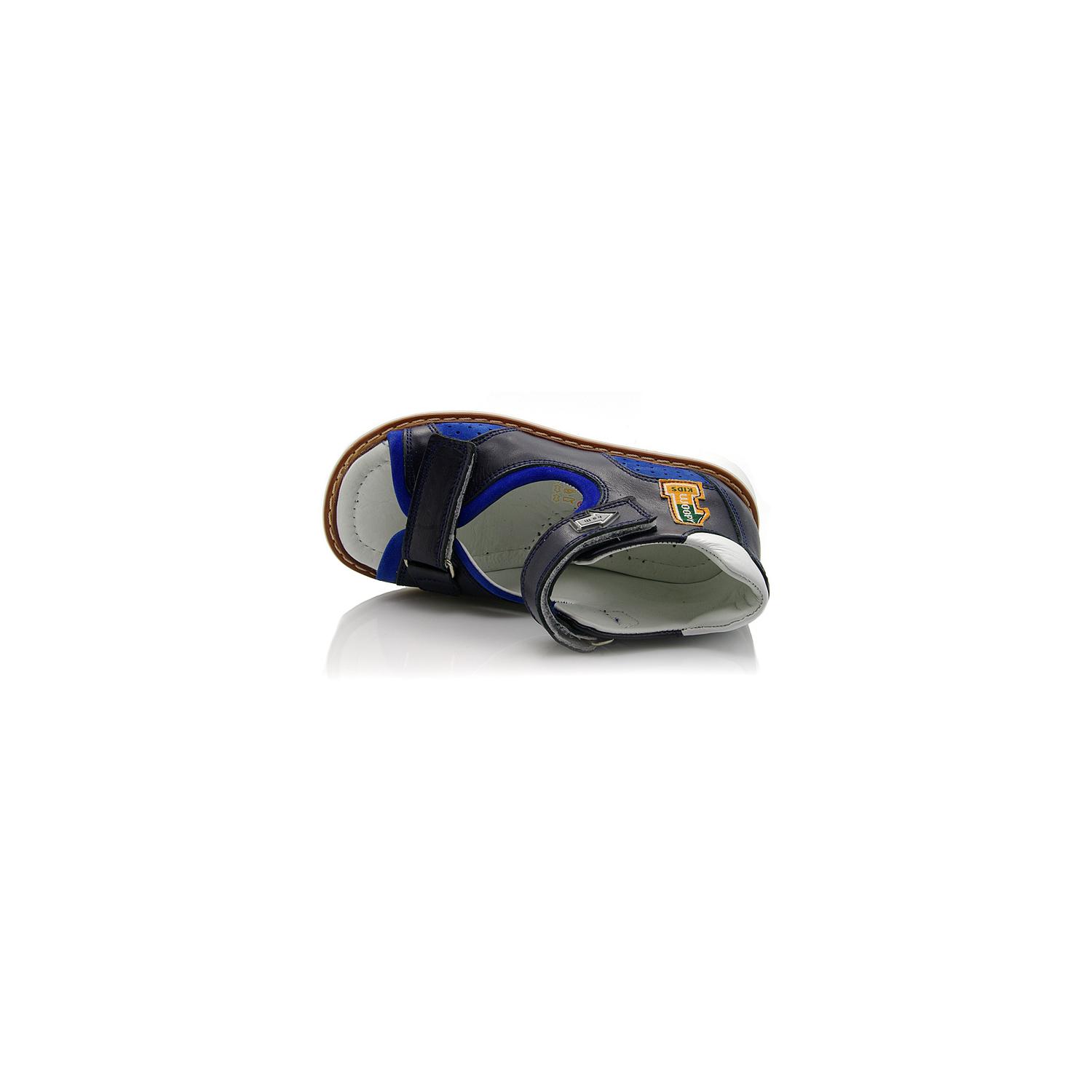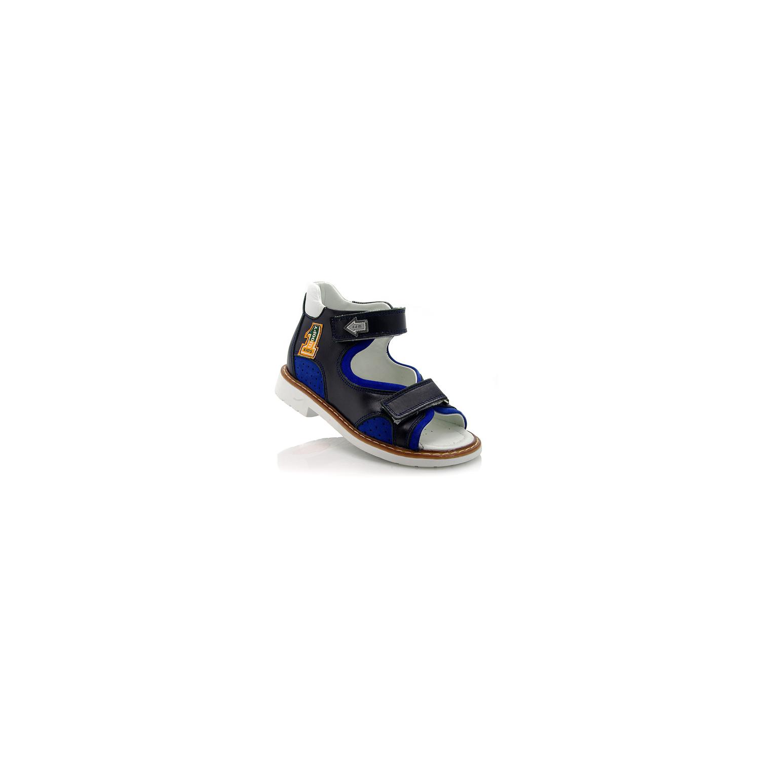 Босоножки ортопедические Woopy orthopedic темно-синего цвета с ярко-синими вставками. Фиксируются двумя липучками. Снаружи кожа + нубук, внутри кожа. Высокая твердая пятка, супинатор и ортопедический каблук Томаса.