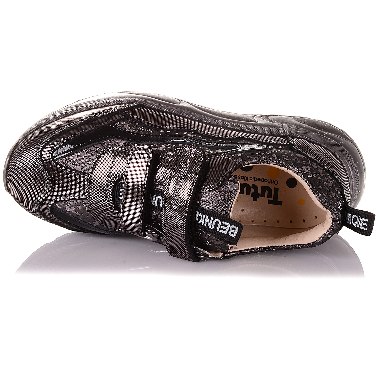 Шкільне взуття від фірми Tutubi - це акуратний дизайн, який дозволить з легкістю поєднувати кросівки з сукнями, комбінезонами і джинсами, підкреслюючи індивідуальність дитини. Взуття для дітей виконане в нубуці - екологічно чистий, зносостійкий і «дихаючий» матеріал. Модель відмінно «сидить» на нозі завдяки двом липучкам, які надійно її фіксують. Жорсткий задник запобігає деформації гомілковостопного суглоба і фіксує кістку п'яти в правильному положенні. Шкіряна устілка з супінатором підтримує зведення стопи і зменшує навантаження на суглобово-зв'язковий апарат. Підошва з термоеластопласту перешкоджає ковзанню і не ускладнює крок.