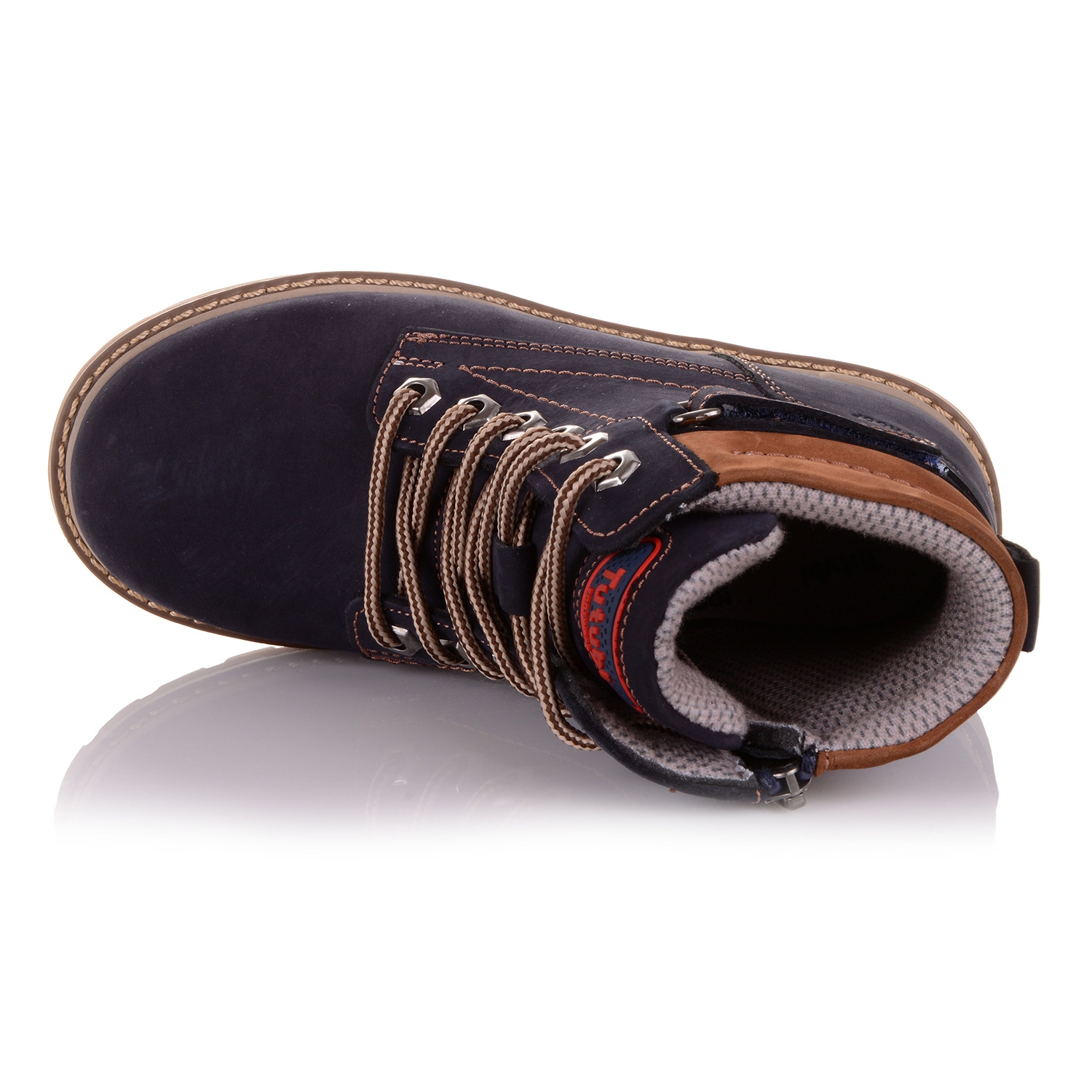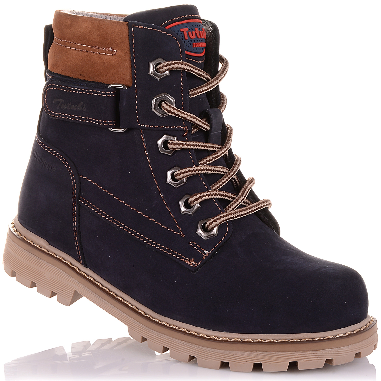 Демісезонні черевики на хлопчика. Модель виконана з натурального нубуку темно-синього, майже чорного кольору, что дозволяє експерементувати и створювати найкрасивіші образи з взуттям Тутубі. У моделі лита підошва, тому таке взуття не просто міцне, воно абсолютно водонепроникне, до того ж легше за вагою. Всередені - фліс. Крім шнурків в моделі ще є блискавка збоку. Анатомічна устілка з твердим супінатором и м'яким прошарком в части п'яти, підтрімає зведення стопи и сприяє здоровому розвитку м'язів. Про фіксацію щиколотки подбає жорсткий задник.