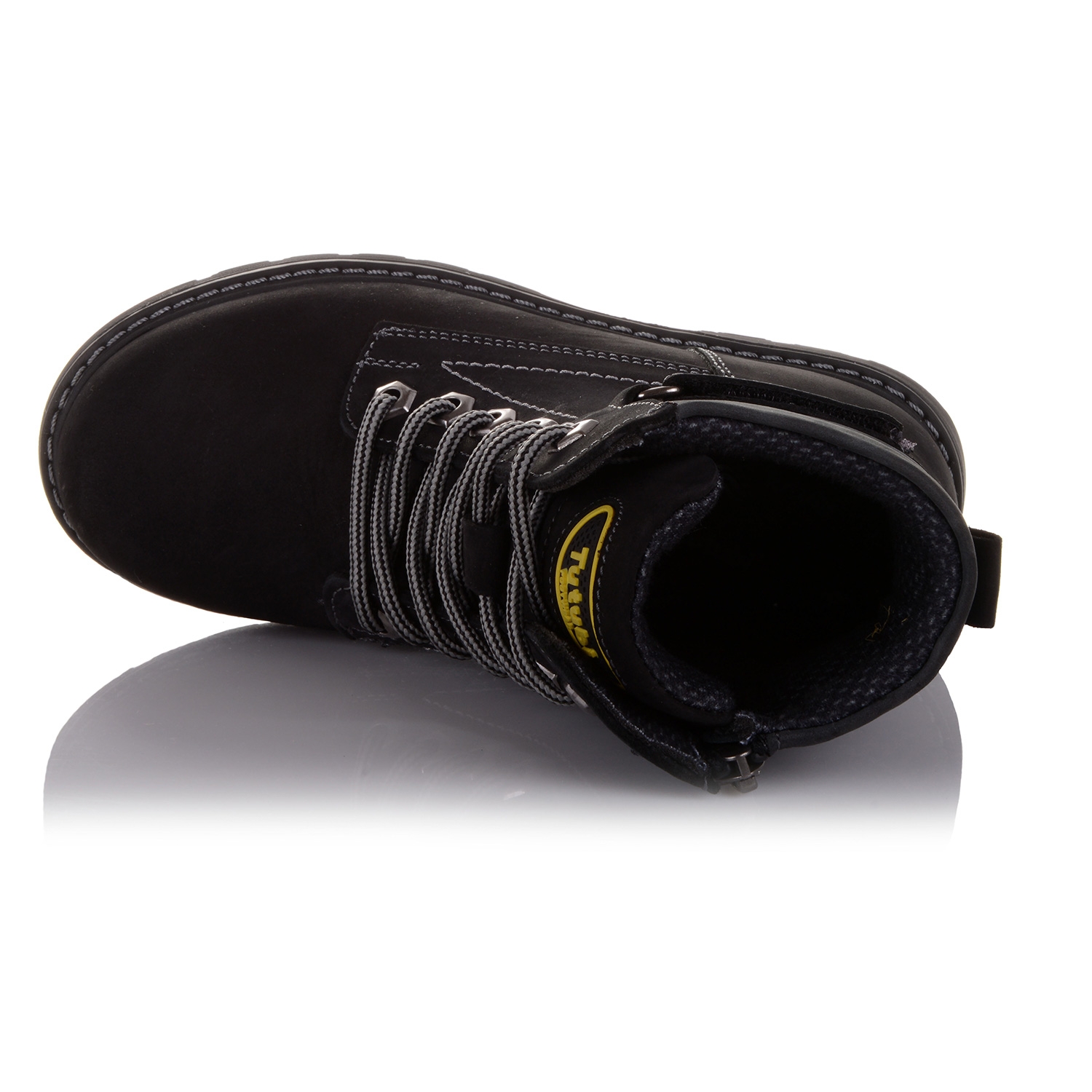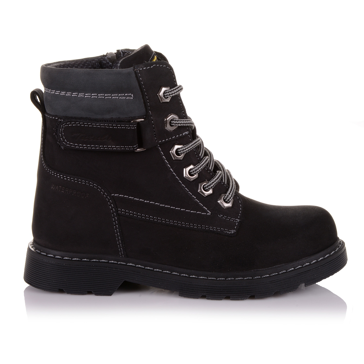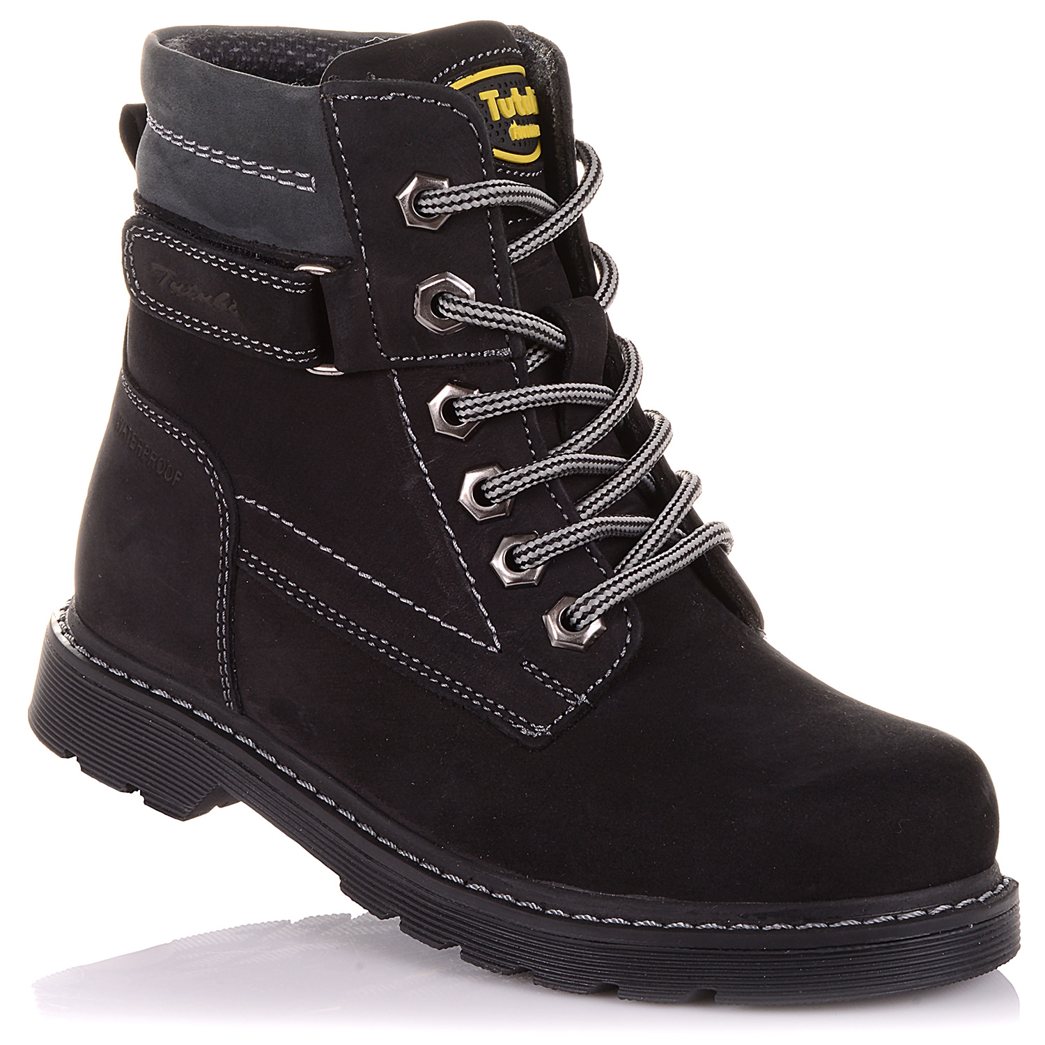 Неймовірно стильні і зручні ортопедичні черевики. Модель виконана з нубука чорногого кольору, що дозволяє експериментувати і створювати найкрасивіші образи з взуттям Тутубі. Всередені - фліс. Одягати такі черевики - секундна справа, адже крім шнурків в них є ще й блискавка збоку. Каблук Томаса з подовженим внутрішнім краєм забезпечить правильну постановку ноги. Анатомічна устілка з твердим супінатором і м'яким прошарком в частині п'яти, підтримає зведення стопи і посприяє здоровому розвитку м'язів. Про фіксації щиколотки подбає жорсткий задник. Підошва щільна з термокаучука, досить добре гнеться.