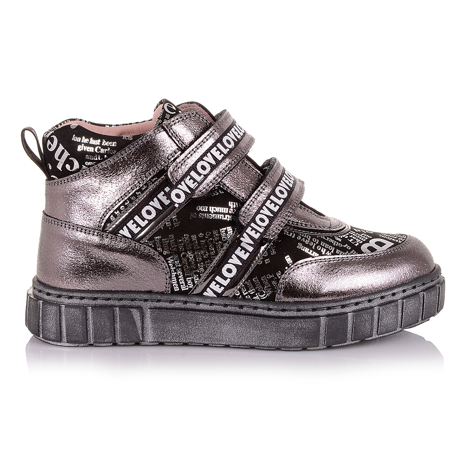 Дуже яскрава і оригінальна модель демісезонних черевиків для дівчинки. Буде яскравим штрихом в осінньому образі. Взуття виконане в натуральній шкірі з прінтованими вставками з нубуку, що виглядає дуже ефектно. Фіксація на дві липучки. Усередині взуття на флісі, шкіряна устілка з супінатором і твердий задник забезпечують фізіологічно правильне положення ніжки. Підошва зносостійка з термокаучука, забезпечує амортизацію, комфортну ходу і хороше зчеплення з твердою поверхнею. Сяйте!