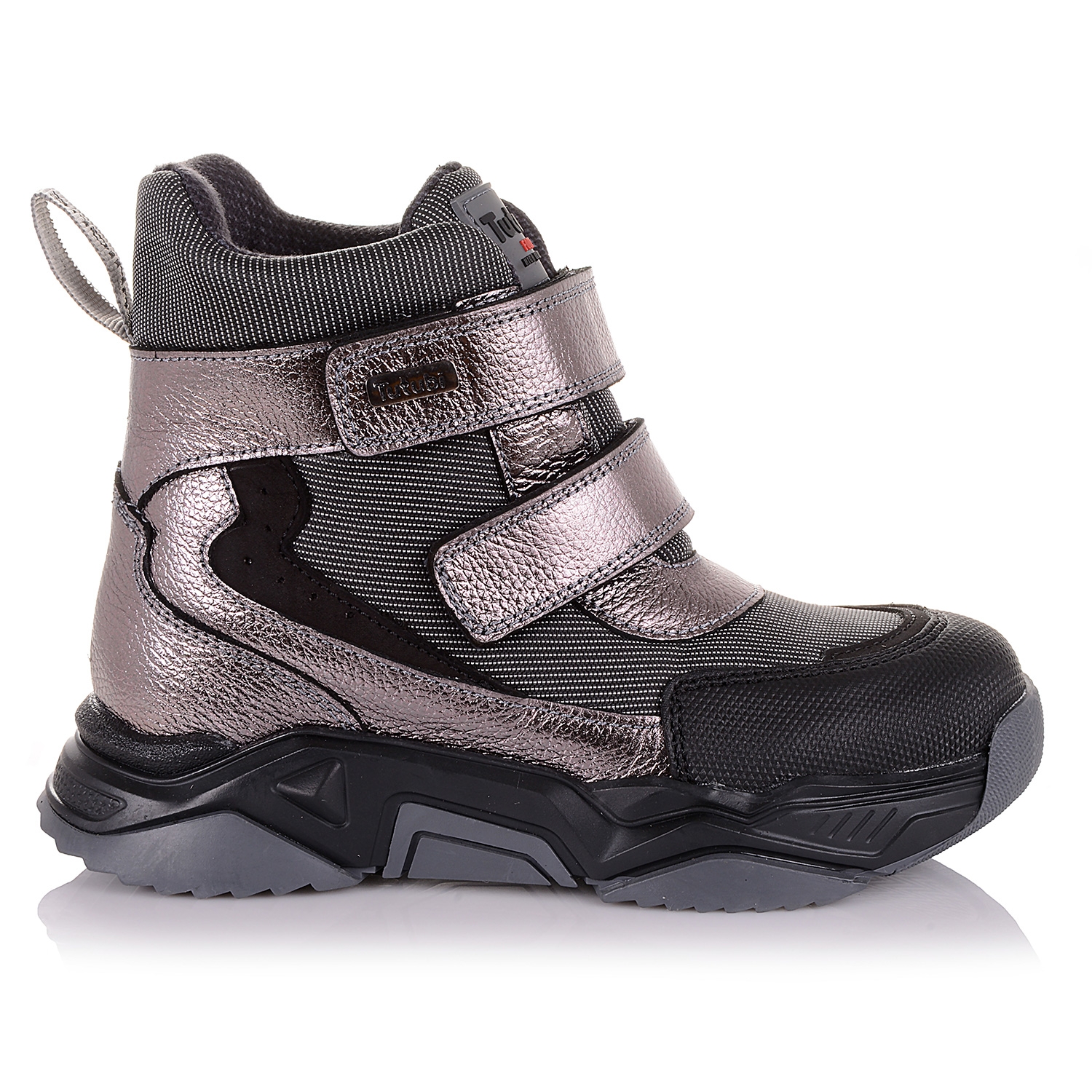 Для самих стильних модниць у нас новинка - графітові теплі демісезонні черевики. Ззовні виконані зі шкіри та текстильних втавок. Взуття виконане в графітовому з переливом кольорі, який буде відмінним доповненням до будь-якого демисезонного одягу. Внутрішня частина взуття та устілка виконані на флісі, який гіпоалергенний і антібактеріальний. Цей матеріал добре утримує тепло, тому в черевиках тепло і сухо. Завдяки двом липучкам можна легко і швидко зафіксувати взуття на нозі. Рельєфна підошва з термоеластопласту забезпечує хороше зчеплення з твердою поверхнею і захищає стоп від пошкоджень. Крім того, вона стійка до зносу і низьких температур.