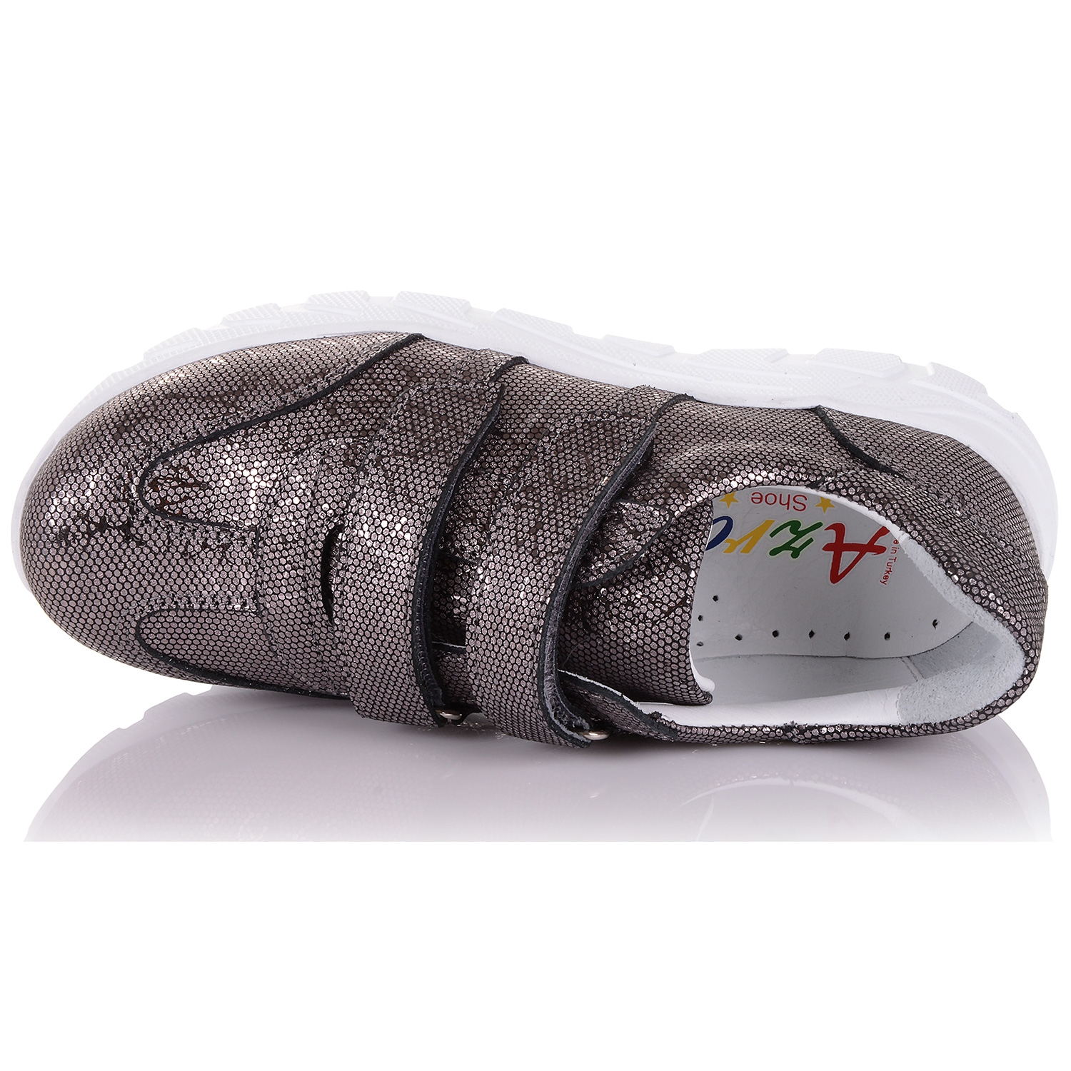 Дитяче взуття з натурального нубуку виглядає вишукано і елегантно. Підошва з термоеластопласту міцна і гнучка, захищає стопу від пошкоджень і перешкоджає ковзанню. Жорсткий задник фіксує п'яту і голеностоп, а також запобігає появі розтягнень і вивихів. За допомогою двох липучок кросівки для дівчинки можна надійно зафіксувати на ногах.