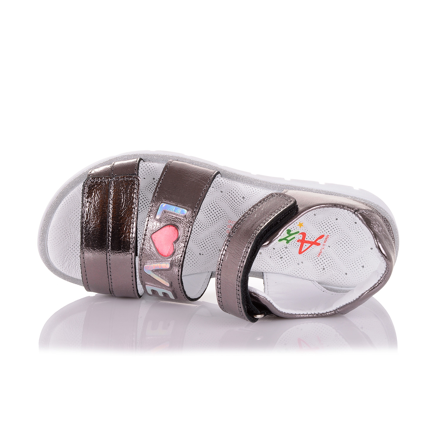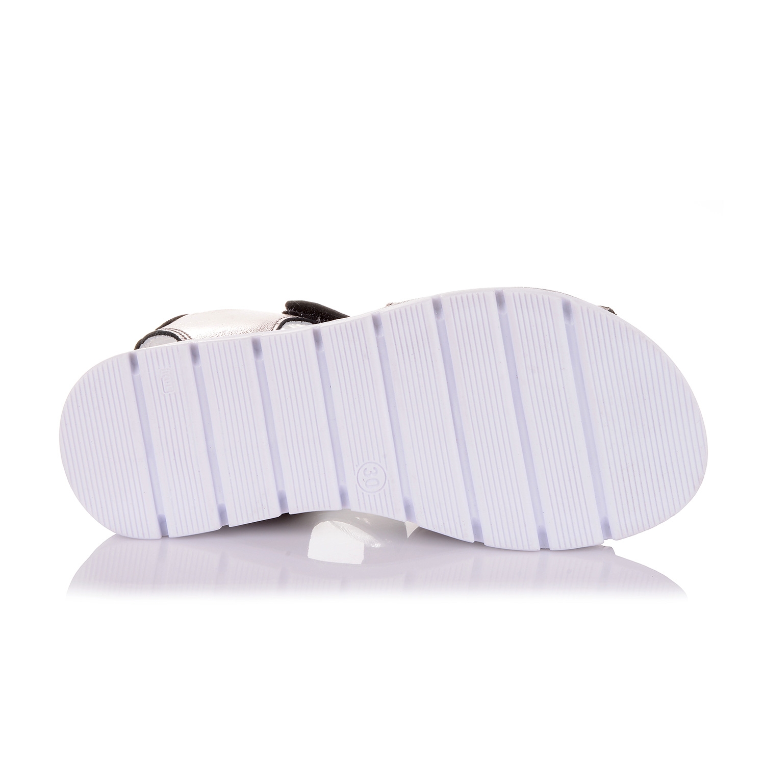 Дитячі босоніжки будуть фантастично виглядати на ногах вашої модниці. Босоніжки виготовлені зі шкіри, яка ефектно переливається на світлі. Анатомічна устілка з супінатором попереджає розвиток плоскостопості, оскільки нога знаходиться в правильному положенні. Спортивна підошва з термокаучука не ковзає по поверхні, стійка до зносу, амортизує крок і рівномірно розподіляє навантаження по всій стопі під час ходьби. За допомогою липучок взуття міцно фіксується на нозі.