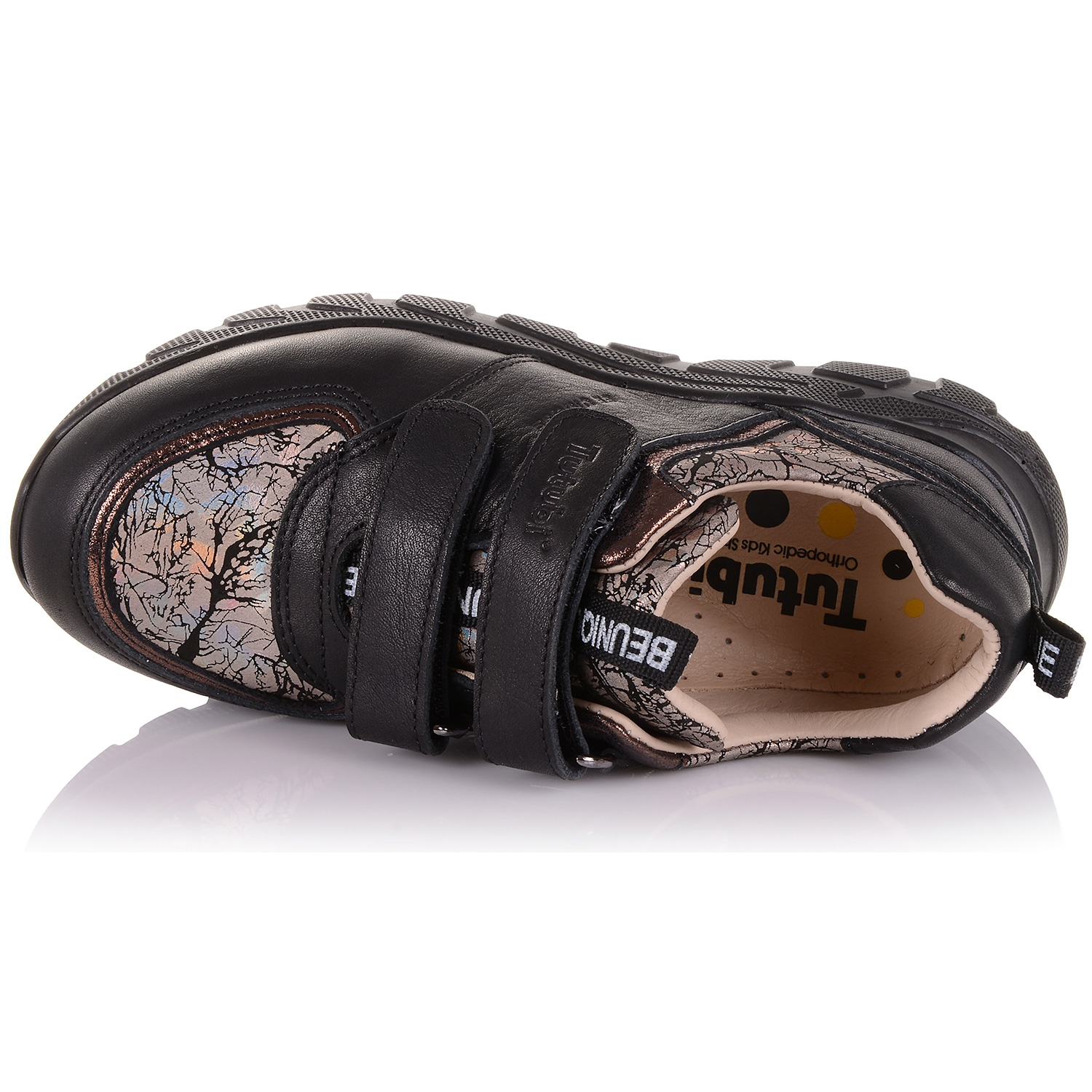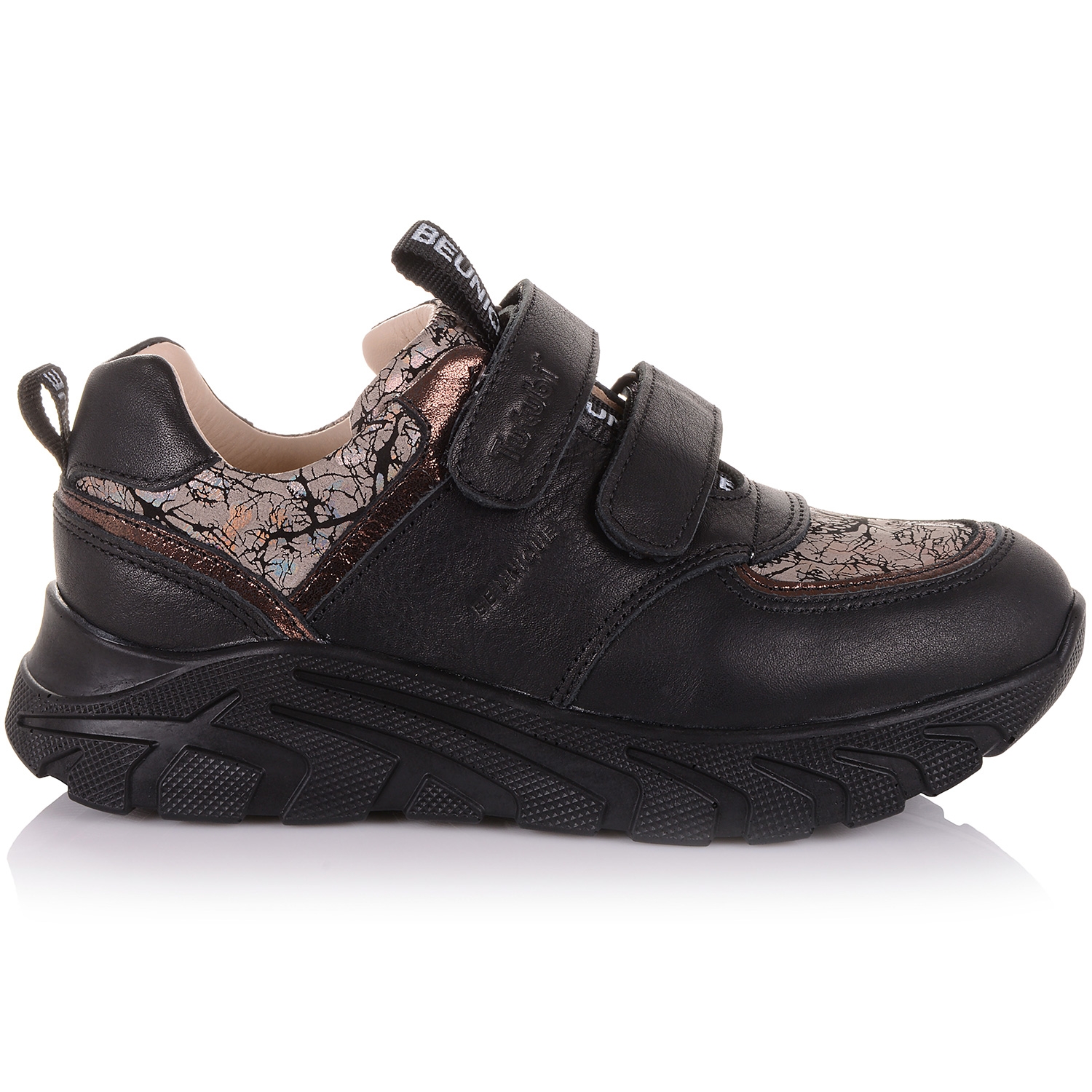 Неймовірно стильні кросівки для дівчинки стануть відмінним доповненням сучасного образу. Дитяче взуття виконане з натуральної шкіри, шкіряна ортопедична устілка з м'яким супінатором знижує ударне навантаження на суглоби, підтримує зведення стопи. Взуття в школу надійно фіксується на дві липучки.
