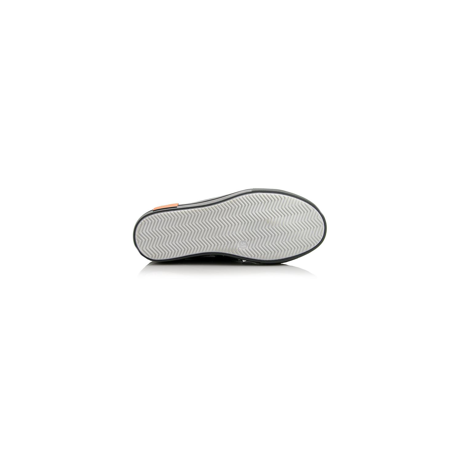 Кроссовки спортивные серого цвета. Сверху фиксируются двумя липучками. Снаружи и внутри кожаные. Есть твердая пятка и супинатор.