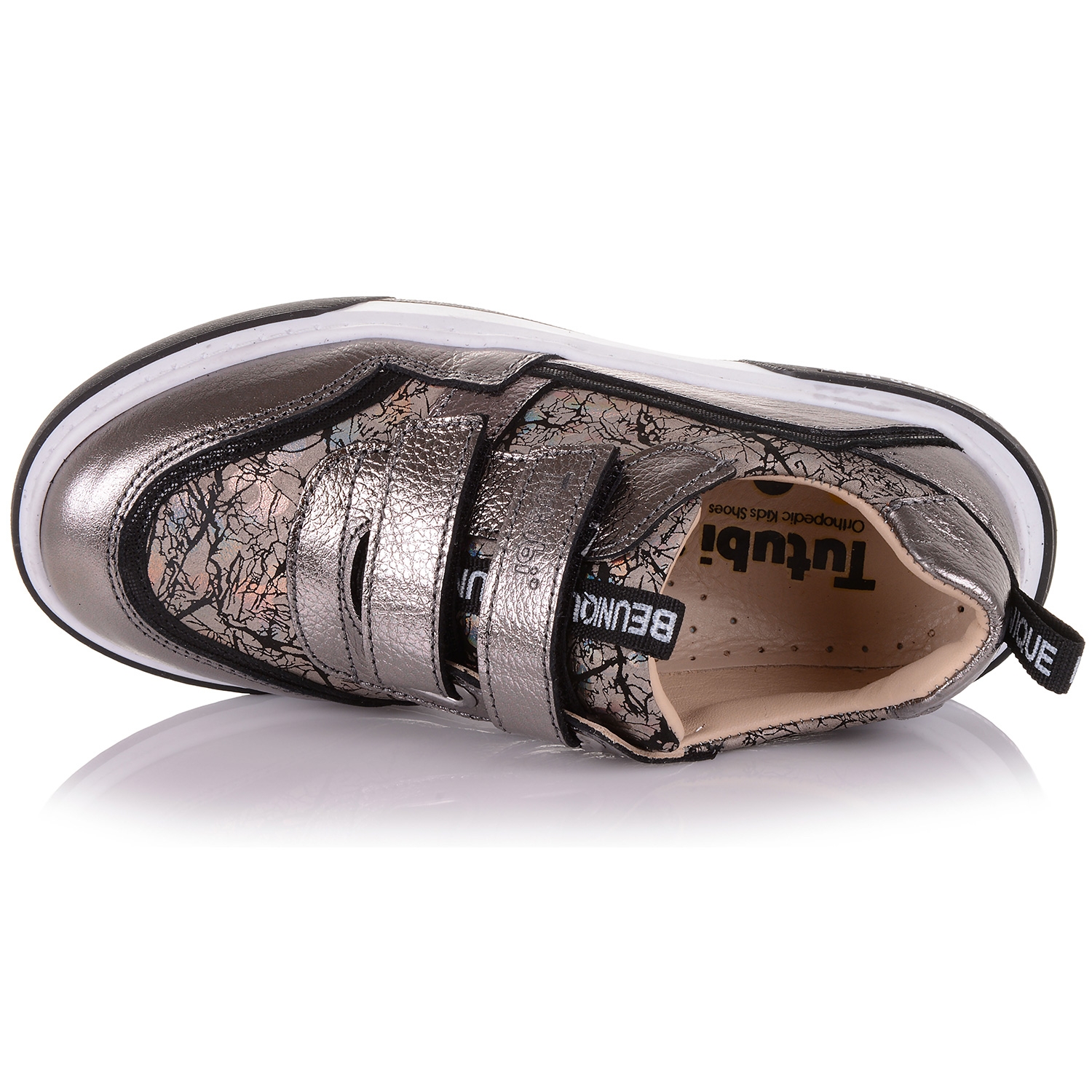 Стильне, шкільне взуття створено для експериментаторів, що віддають перевагу комфорту і свободі. Взуття для дітей виготовлено з ексклюзивної шкіри в поєднанні з нубуком. Внутрішня м'яка шкіряна устілка з супінатором і твердий задник забезпечують фізіологічно правильне положення ноги, а зручна фіксація на дві липучки дозволить вибрати взуття на ногу різної повноти і висоти зводу. Підошва, зносостійка з термокаучука.