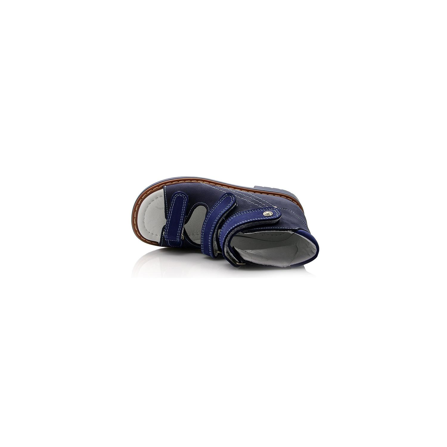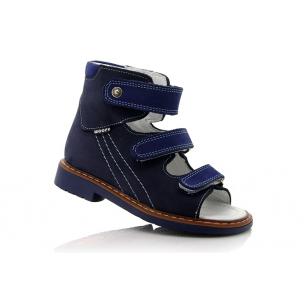 Босоножки ортопедические Woopy orthopedic темно-синего цвета (с высоким берцем). Сверху фиксируются тремя липучками. Снаружи - нубук, внутри кожаные. Завышенная твердая пятка, супинатор и ортопедический каблук Томаса.