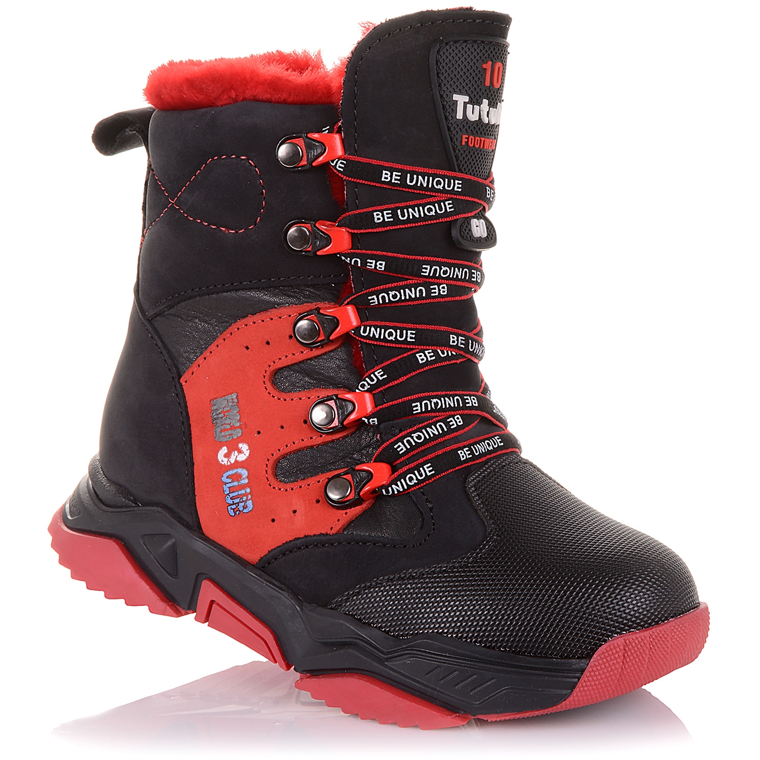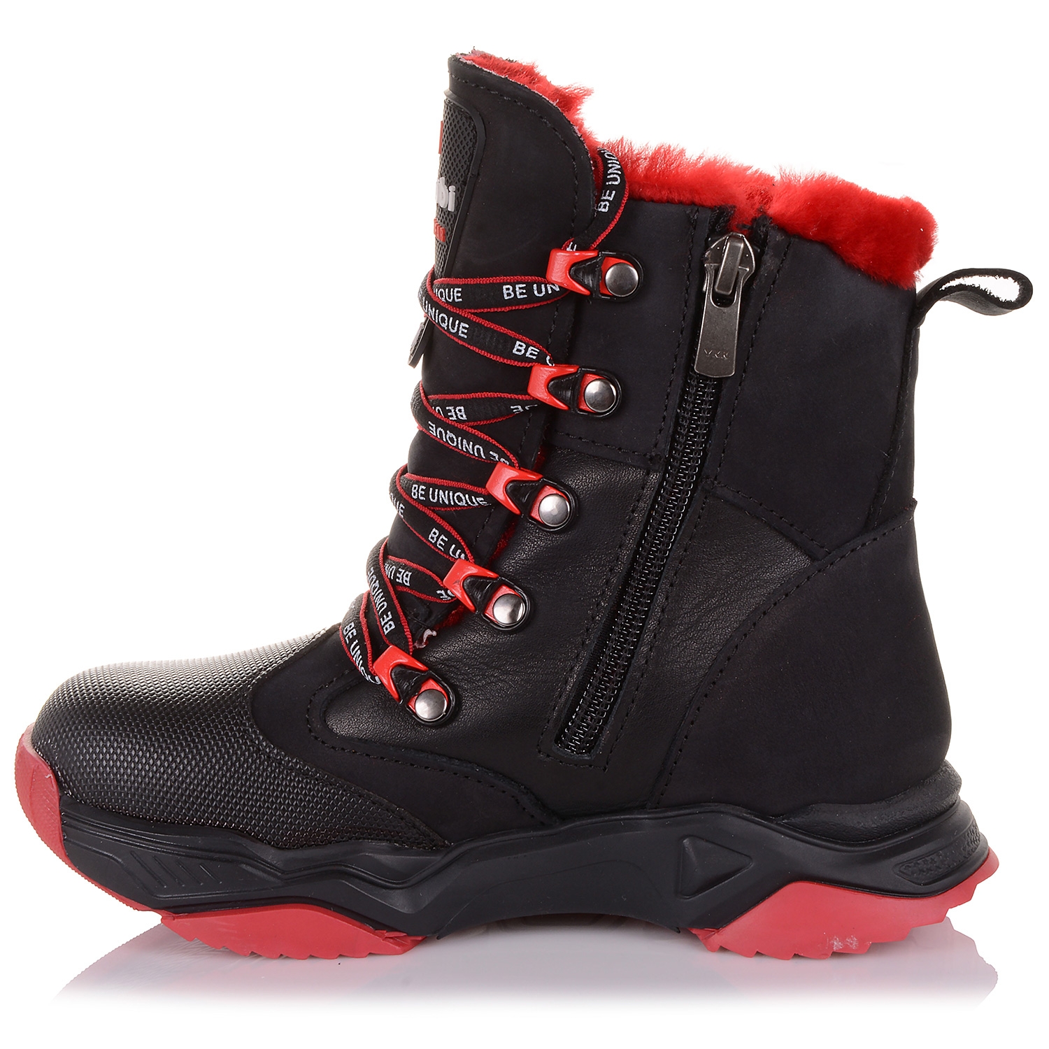Спортивні зимові черевики для дівчинки на шнурках і блискавці з цільним язичком забезпечать комфортне проведення часу на вулиці в холодну і сніжну погоду. Зовні взуття виконано з нубуку та натуральної шкіри чорного кольору, а також оздоблено додатковим захистом - повністю прорезиненим носком. Нога фіксується шнурівкою, збоку зручна змійка. Внутрішня м'яка хутряна устілка з супінатором сприяє правильному формуванню склепіння стопи, а твердий задник забезпечують фізіологічно правильне положення і профілактику деформації стопи. Підошва зносостійка з термокаучука, забезпечує амортизацію, комфортну ходу і хороше зчеплення зі слизькою поверхнею.