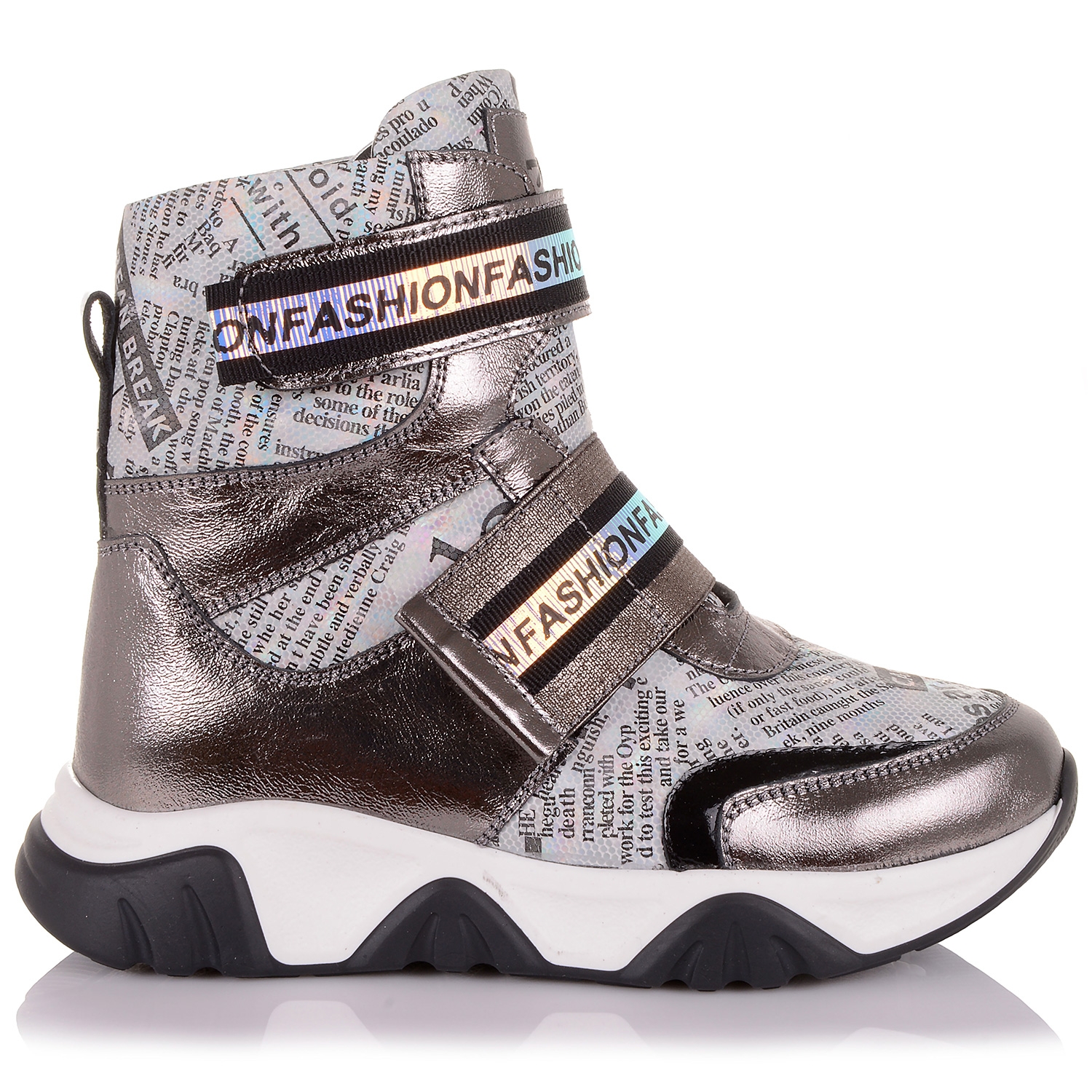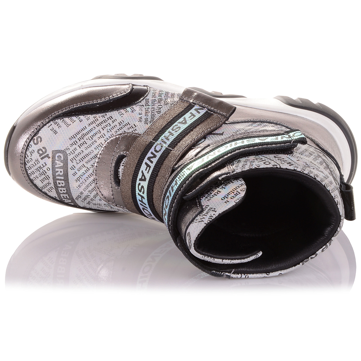 Головна / Дитяче взуття / ДЛЯ ДІВЧИНКИ / Сріблясті демісезонні черевики на липучках