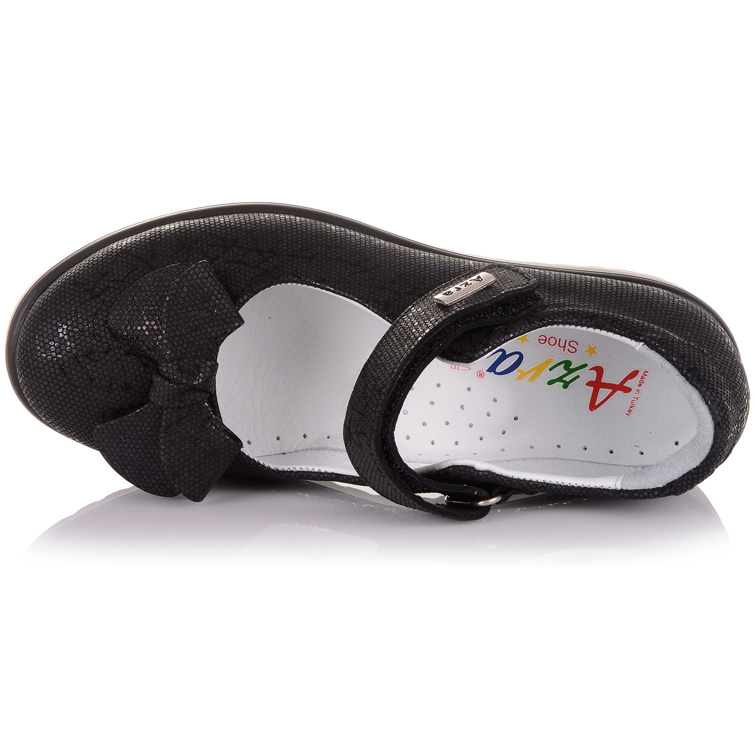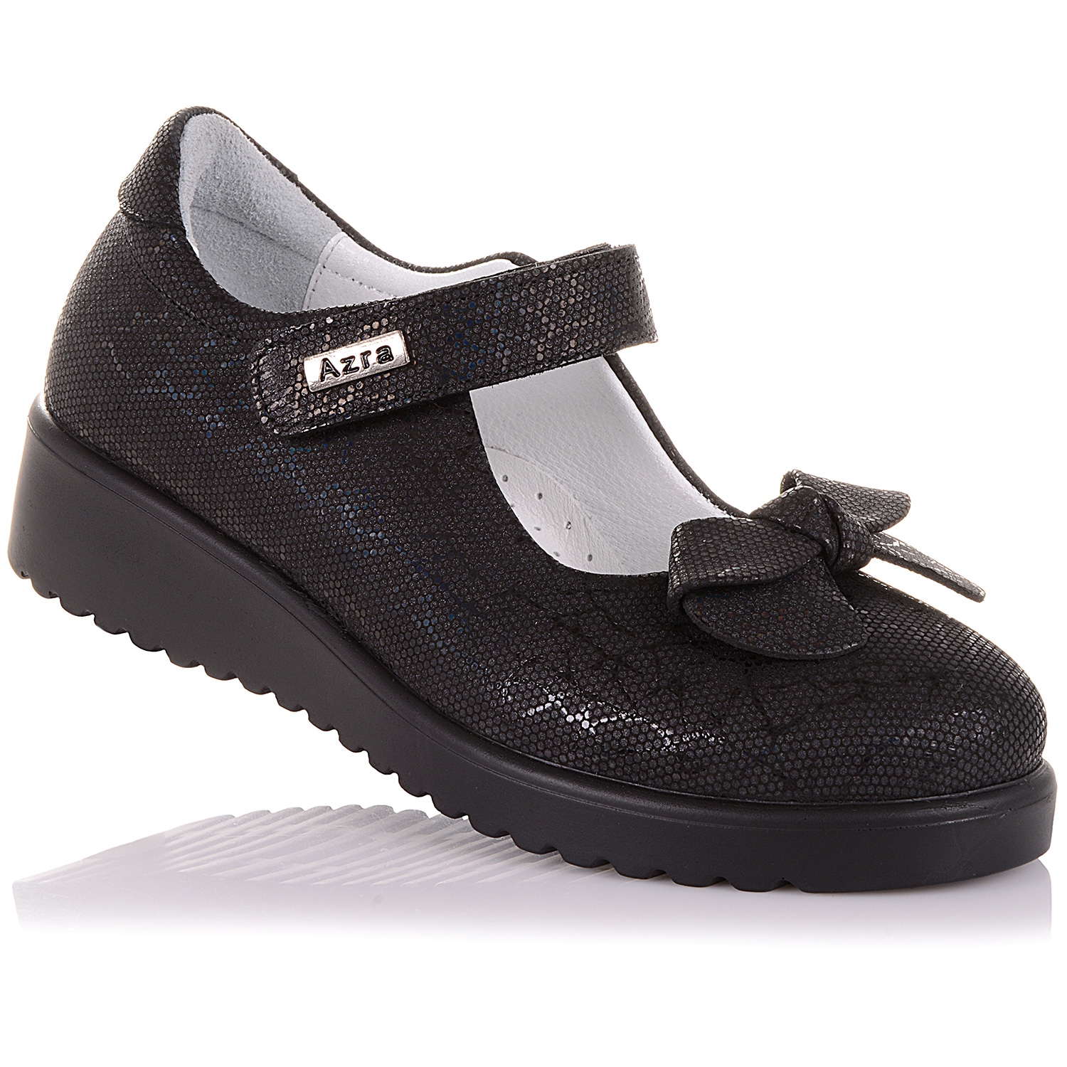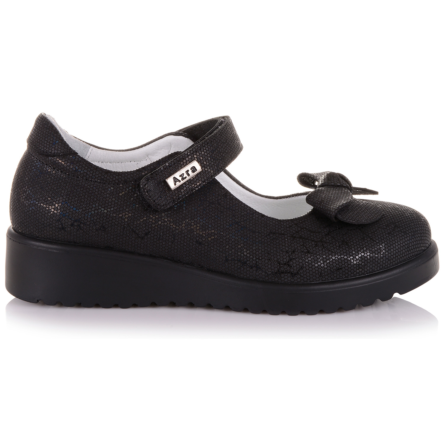 Дитяче взуття виконано з натуральних нубуку (верх) і шкіри. Помірно жорсткий задник попереджає деформування гомілковостопного суглоба і фіксує кістку п'яти в правильному положенні. Шкіряна устілка з супінатором і спеціальними отворами знижує ударне навантаження на суглоби, забезпечує виведення вологи під час потовиділення. Взуття в школу надійно фіксується на нозі за допомогою липучки.