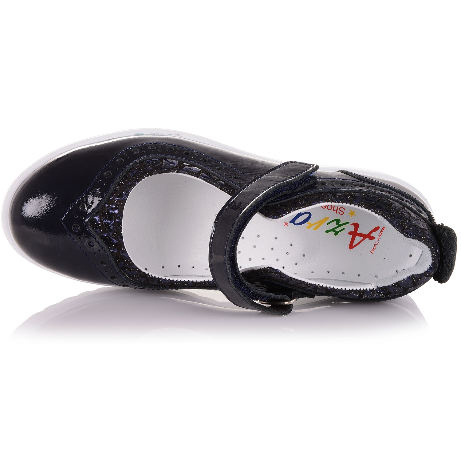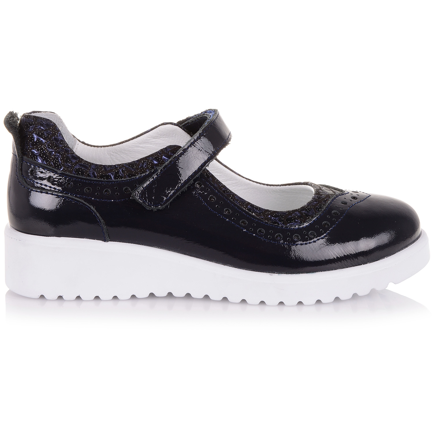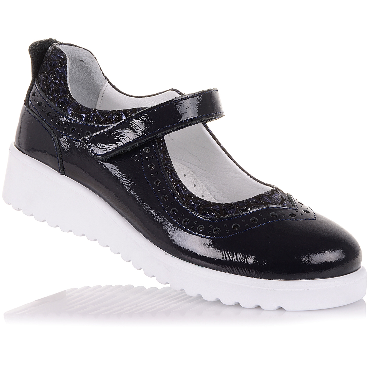 Туфлі стильне і зручне дитяче взуття. Модель виготовлена з натуральної шкіри. Верхня частина виробу покрита лаком. Жорсткий задник дозволяє зафіксувати кістку п'яти в правильному положенні і запобігає деформації гомілковостопного суглоба. Шкіряна устілка з супінатором підтримує зведення стопи. Міцна підошва з термоеластопласту відмінно амортизує крок і забезпечує хороше зчеплення з твердою поверхнею. Завдяки тонкому ремінцю з липучкою взуття на осінь легко зафіксувати на ніжці.