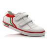 Кроссовки спортивные белого цвета с цветными вставками. Сверху фиксируются двумя липучками. Снаружи и внутри кожаные. Есть твердая пятка и супинатор.