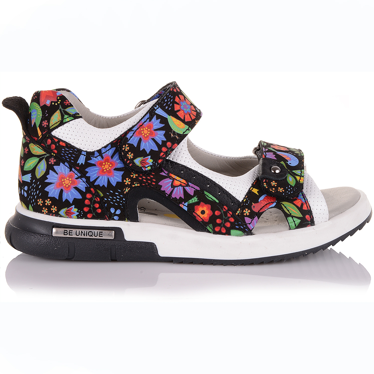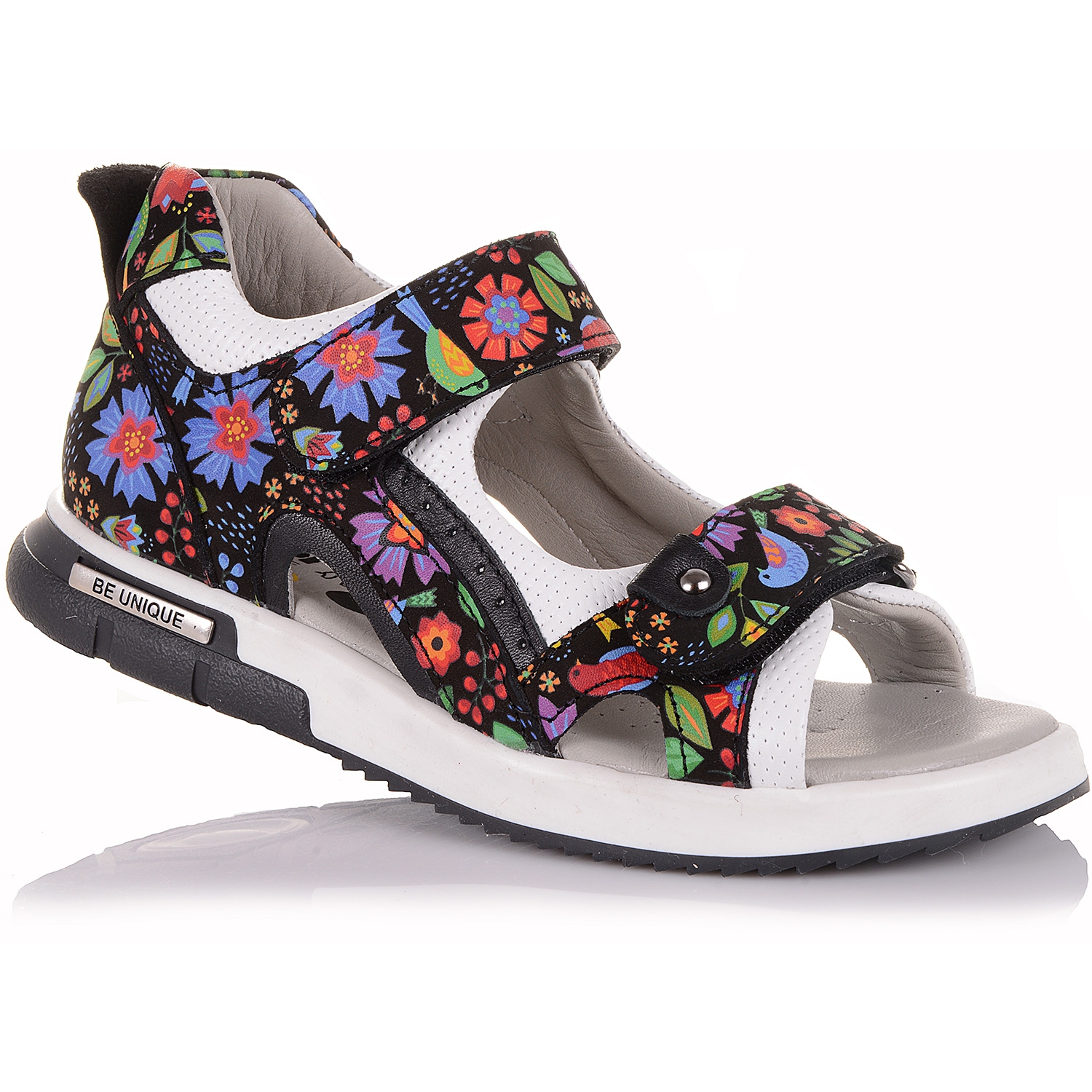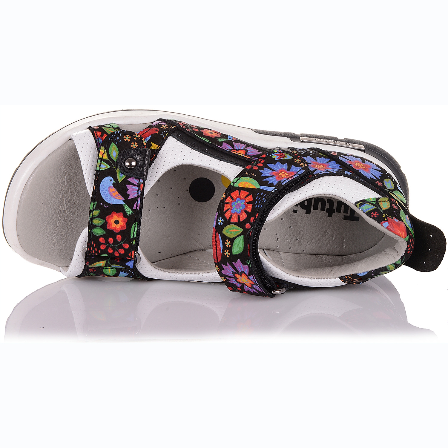 Бажаєте купити дитяче взуття із українськими мотивами? Тільки подивіться на ці нейморвірні босоніжки для дівчинки з яскравими волошками на чорному фоні. Сандалі для дітей зроблено з нубуку та шкіри, устілка із супінатором також шкіряна, тому нога не буде пріти та ковзати у взутті. Підошва міцна, з термоеластопласту, зносостійка та практична. Липучки дозволять без проблем зафіксувати модель на нозі.