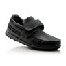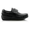 Мокасины Minimen темно-графитового цвета, на широкой липучке. Внутри и снаружи кожаные, есть супинатор и твердая пятка.