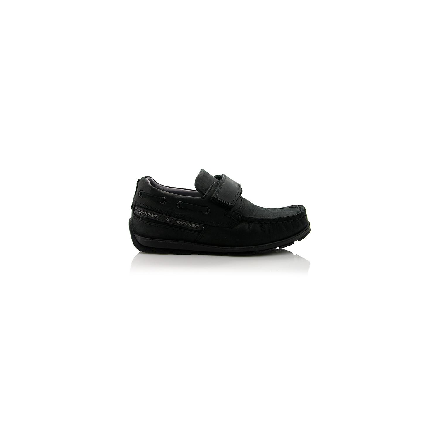 Мокасины Minimen черного цвета, на широкой липучке. Внутри и снаружи кожаные, есть супинатор и твердая пятка.