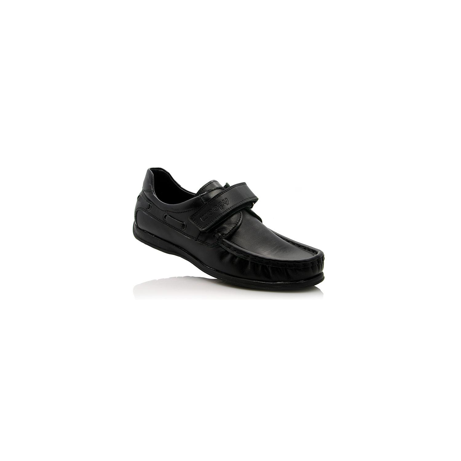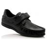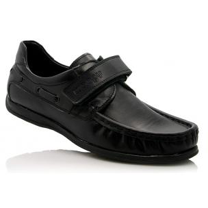 Мокасины школьные черного цвета, фиксируются широкой липучкой. Внутри и снаружи кожаные, есть супинатор и твердая пятка.