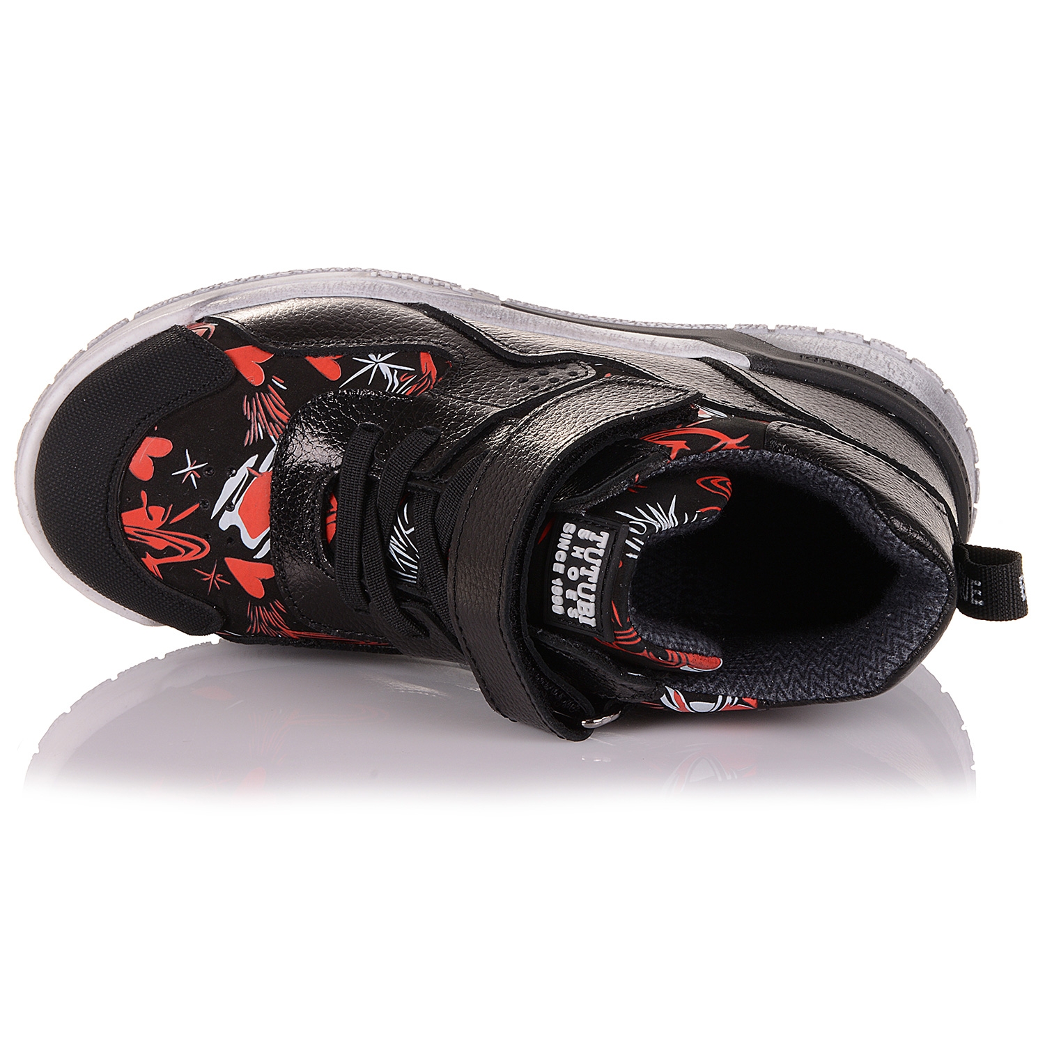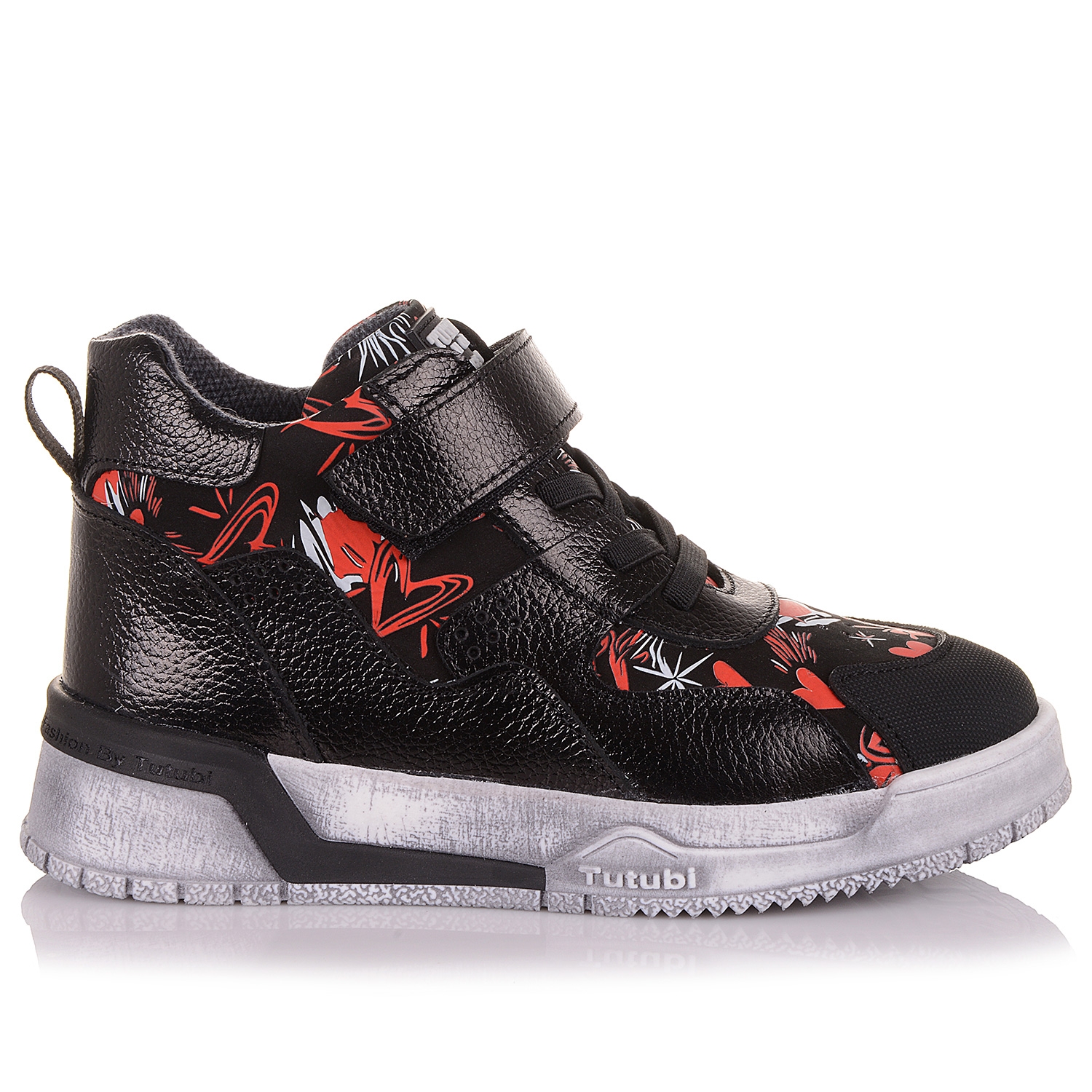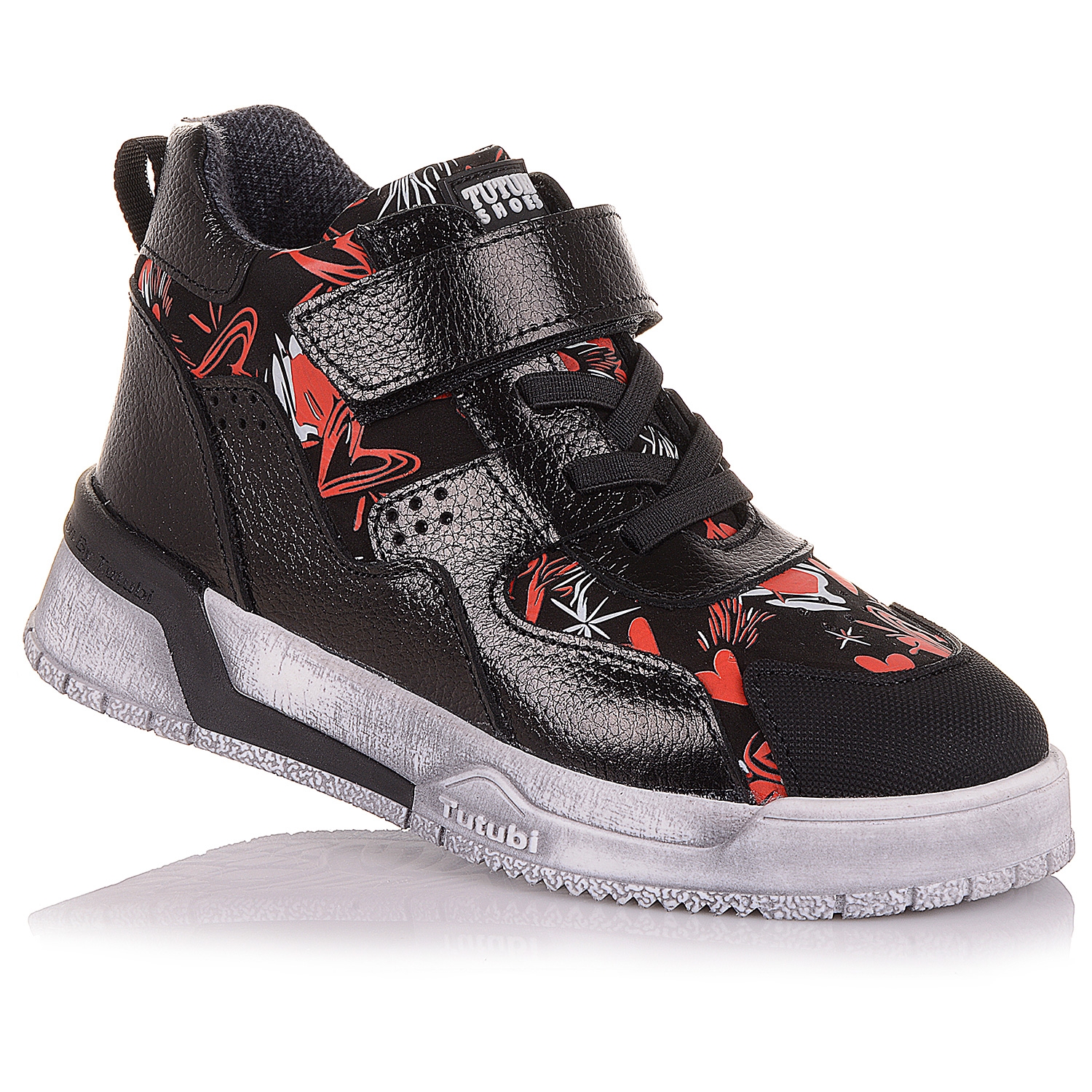Купити дитяче взуття для прохолодних осінніх днів можна у нас. Неймовірно стильні черевики із чарівним принтом-серденьками вироблено із нубуку та лакованої шкіри. Носова частина - прогумована. Середина взуття для дівчат дуже комфортна за рахунок устілки з супінатором та приємного, теплого флісу. Модель фіксується на стопі липучкою та резинками під нею. Підошва практичного кольору, спортивна, зручна та зносостійка. Це взуття здивує навіть найвибагливішу модницю!