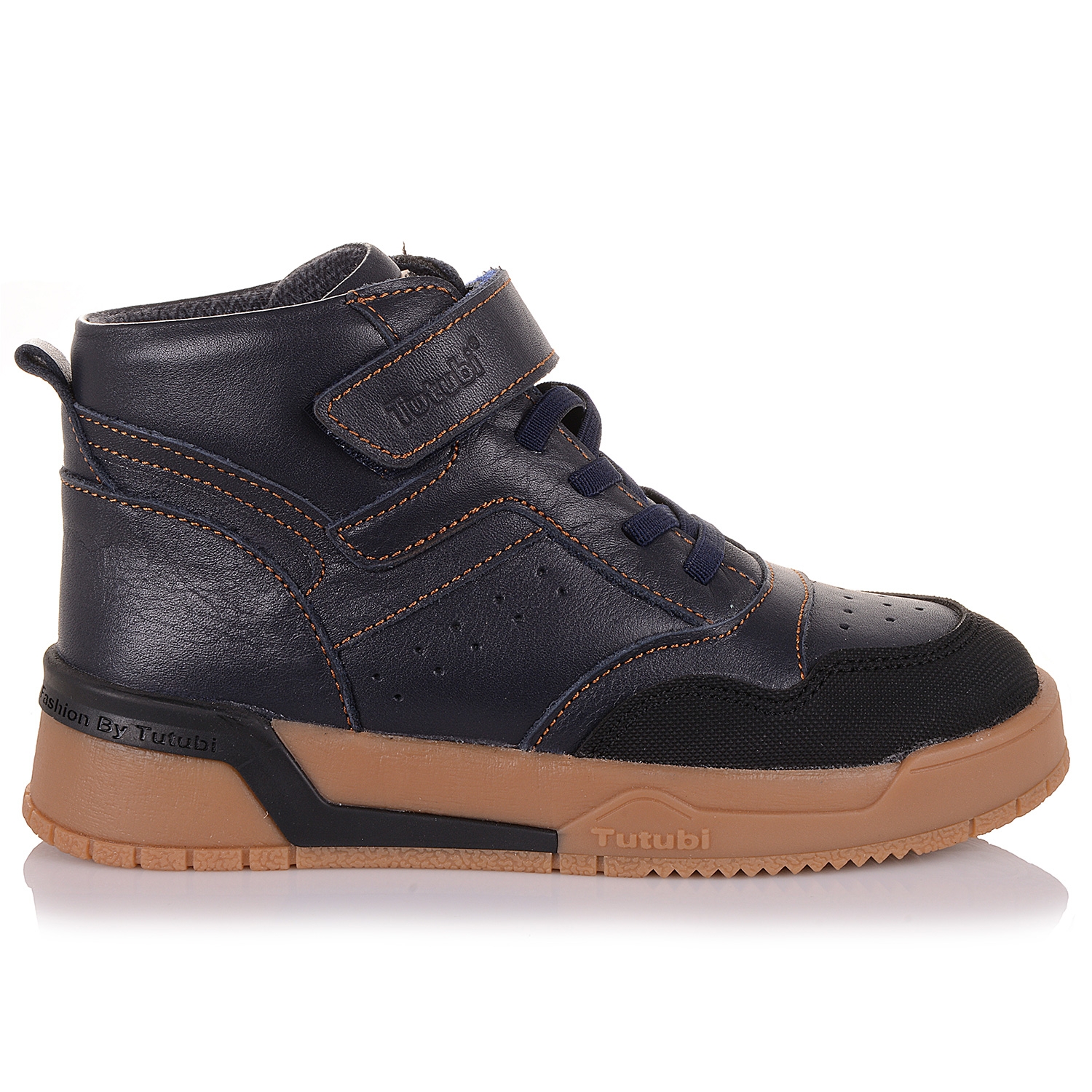 Темно-синє демісезонне дитяче взуття на коричневій підошві