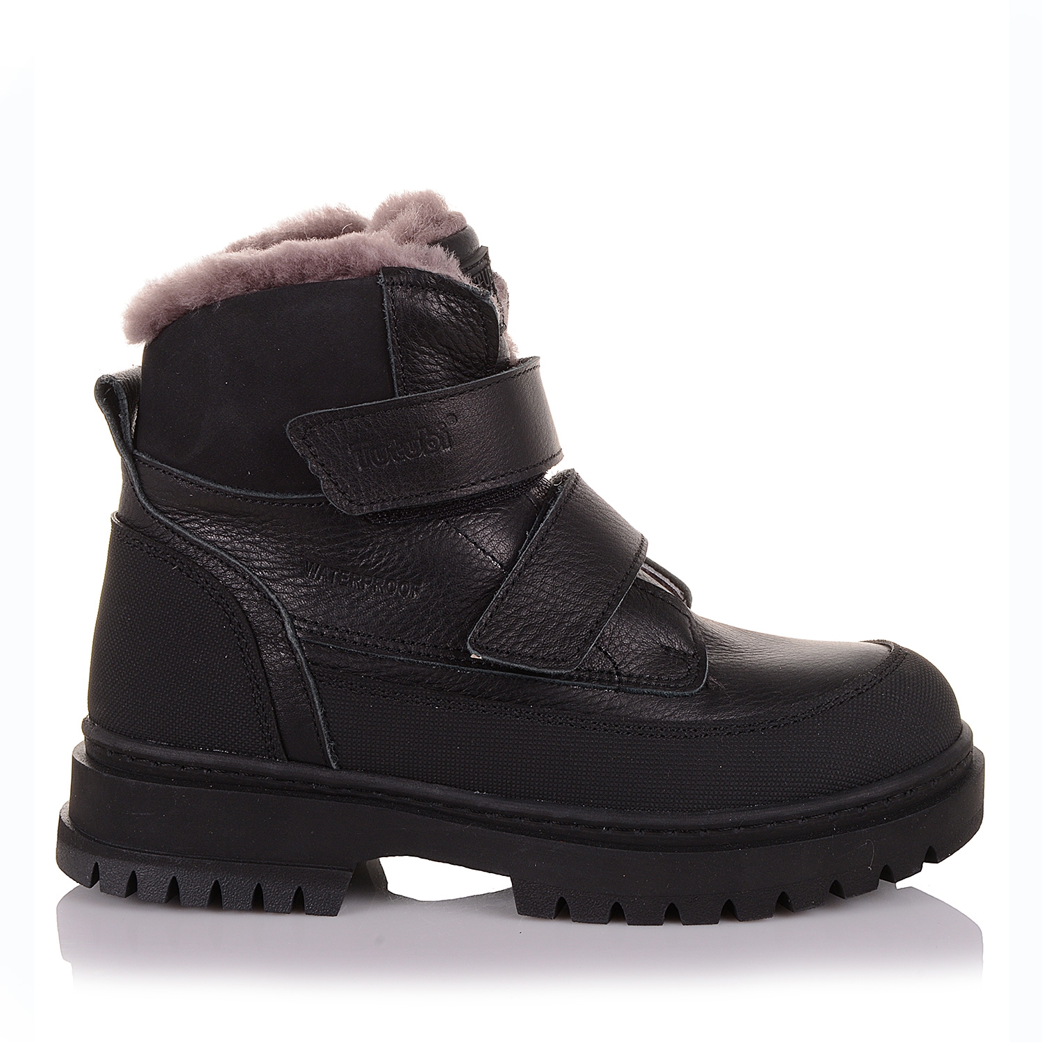 Бажаєте купити дитяче взуття тепле, практичне та стильне? Зимові черевики виготовлено з натуральної шкіри, підкладка і устілка з натурального хутра. Основа і носова частина черевиків вкрита гумовою накладкою. Вона захистить взуття від подряпин, холоду та вологи. Для зручності в якості застібки використовуються дві липучки. Жорсткий задник, ортопедична устілка і супінатор забезпечать фізіологічно правильне положення ніжки всередині. Теплі і якісні завдяки використанню виключно натуральних матеріалів, зимові черевики стануть найкращим атрибутом зимового образу для Вашої дитини.