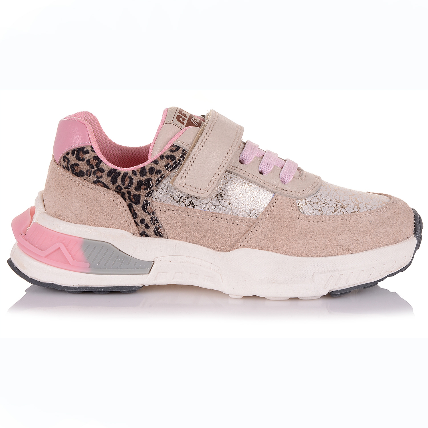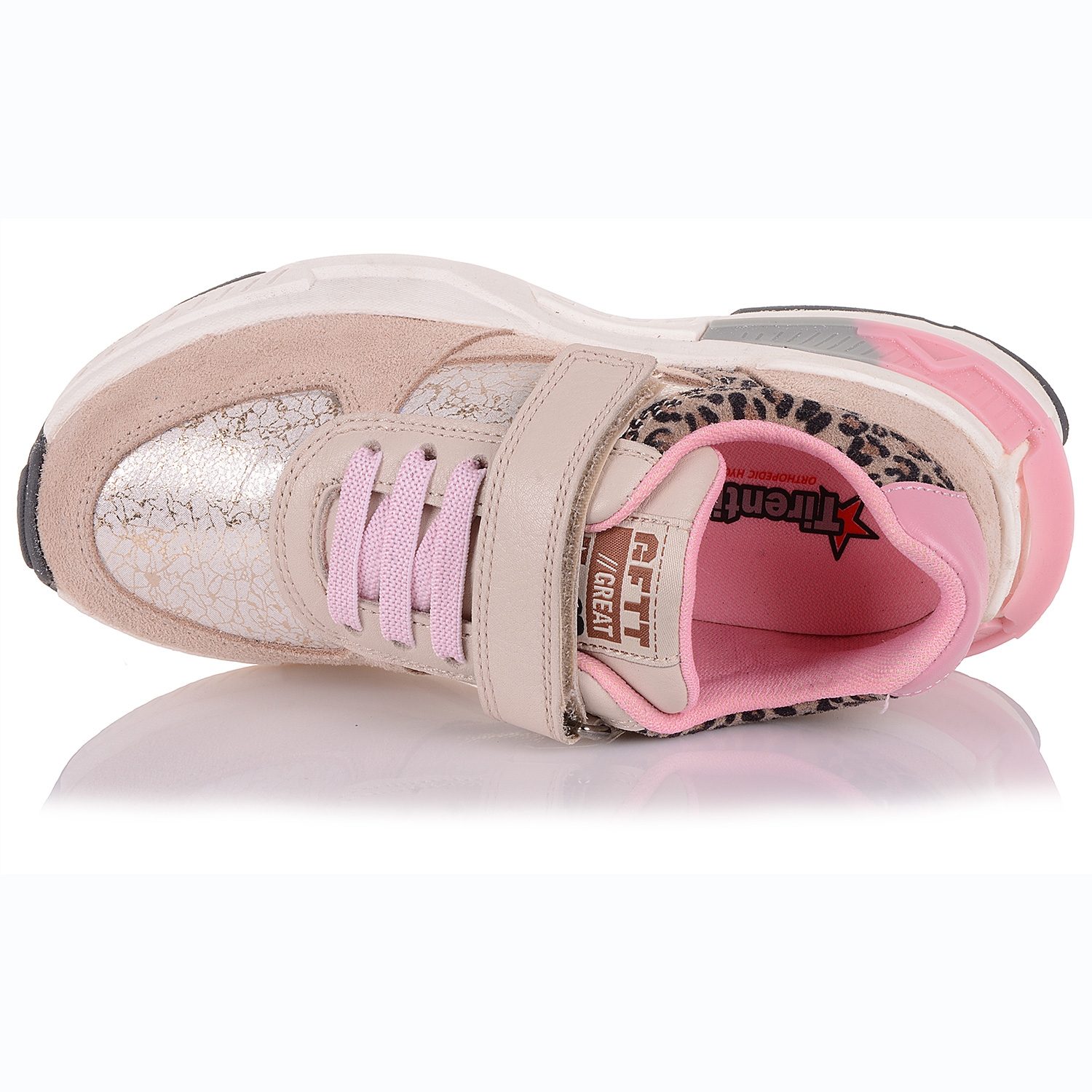 Дитяче взуття має відповідати трьом критеріям: бути зручним, міцним та гарним. Саме такою є модель кросівок для дівчат від Тірені. Взуття для дітей зроблено с натуральної шкіри та замші у дуже приємних, "дівчачих" кольорах. Середина яскраво-рожева, текстильна. Підошва легка, стильна, спортивна, з термоеластопласту, не обтяжує крок. У молелі відсутні супінатор та потовщений задник!