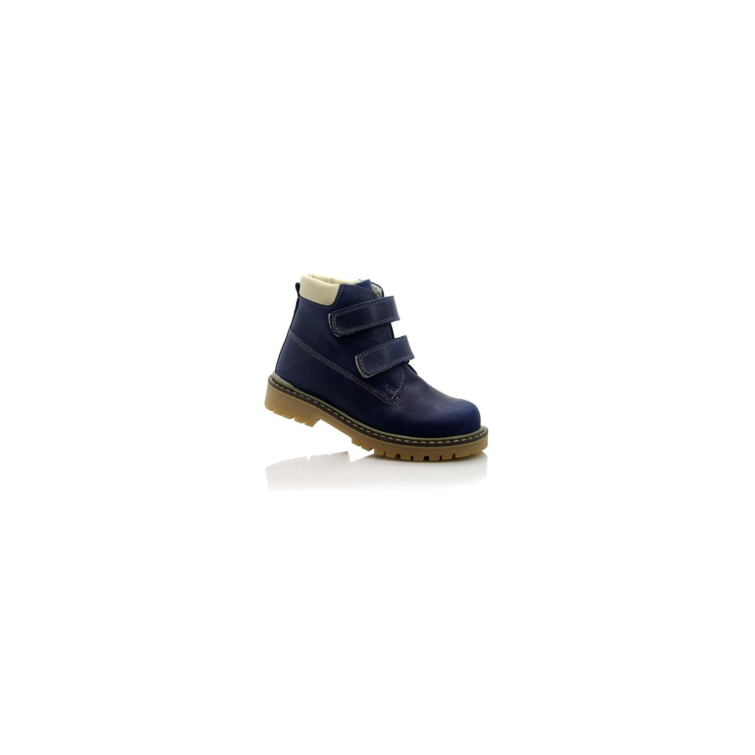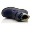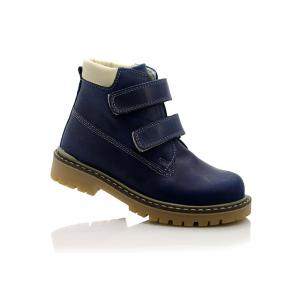 Ботинки ортопедические темно-синего цвета. Сверху регулируются двумя липучками. Снаружи кожа, внутри - флис. Высокая твердая пятка и супинатор.