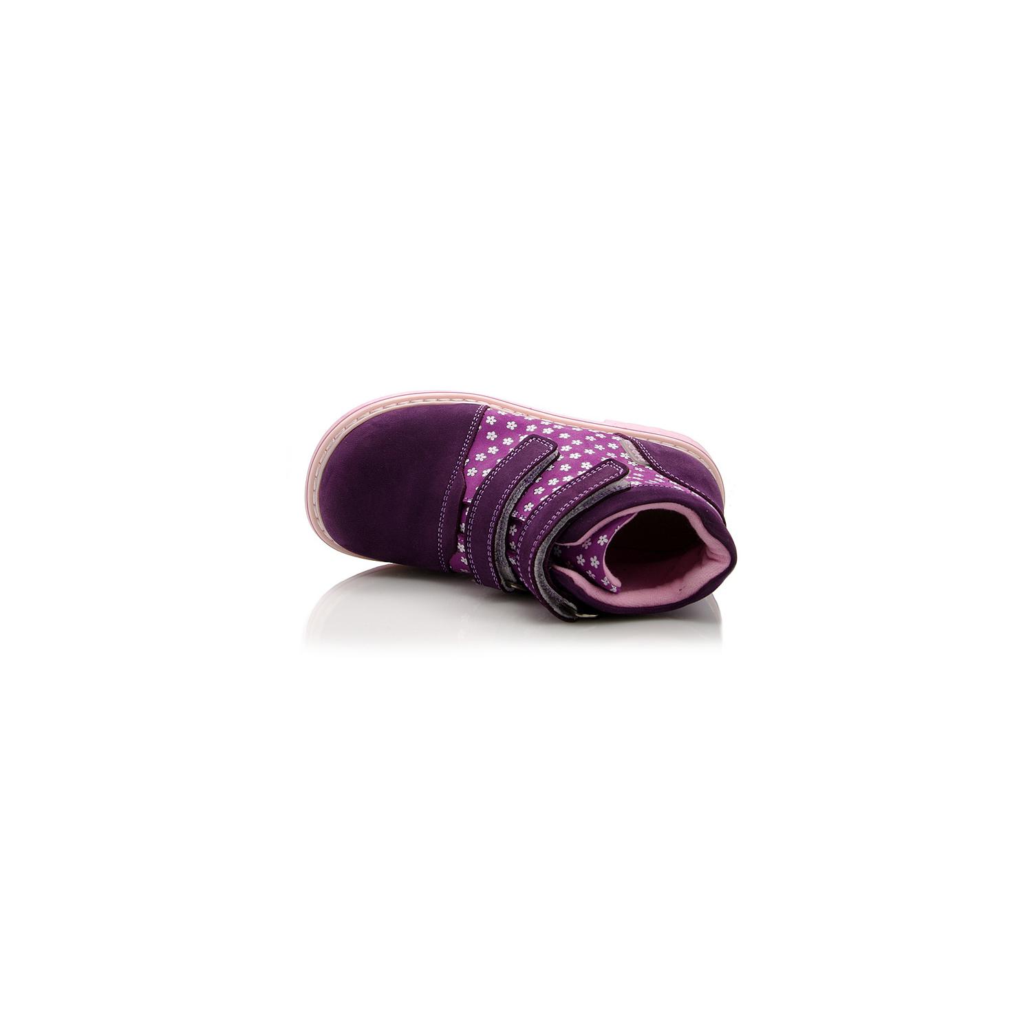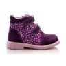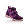Ботинки ортопедические фиолетового цвета с сиреневыми вставками (цветочки). Сверху регулируются двумя липучками. Снаружи нубук, внутри - флис. Высокая твердая пятка, супинатор и ортопедический каблук Томаса.