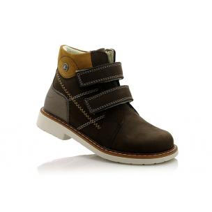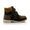 Ботинки ортопедические темно-коричневого (шоколадного) цвета. Сверху фиксируются двумя липучками, снаружи гладкий нубук, внутри - флис. Высокая твердая пятка, супинатор и ортопедический каблук Томаса.
