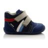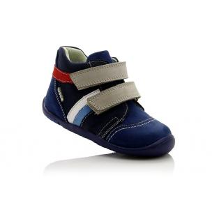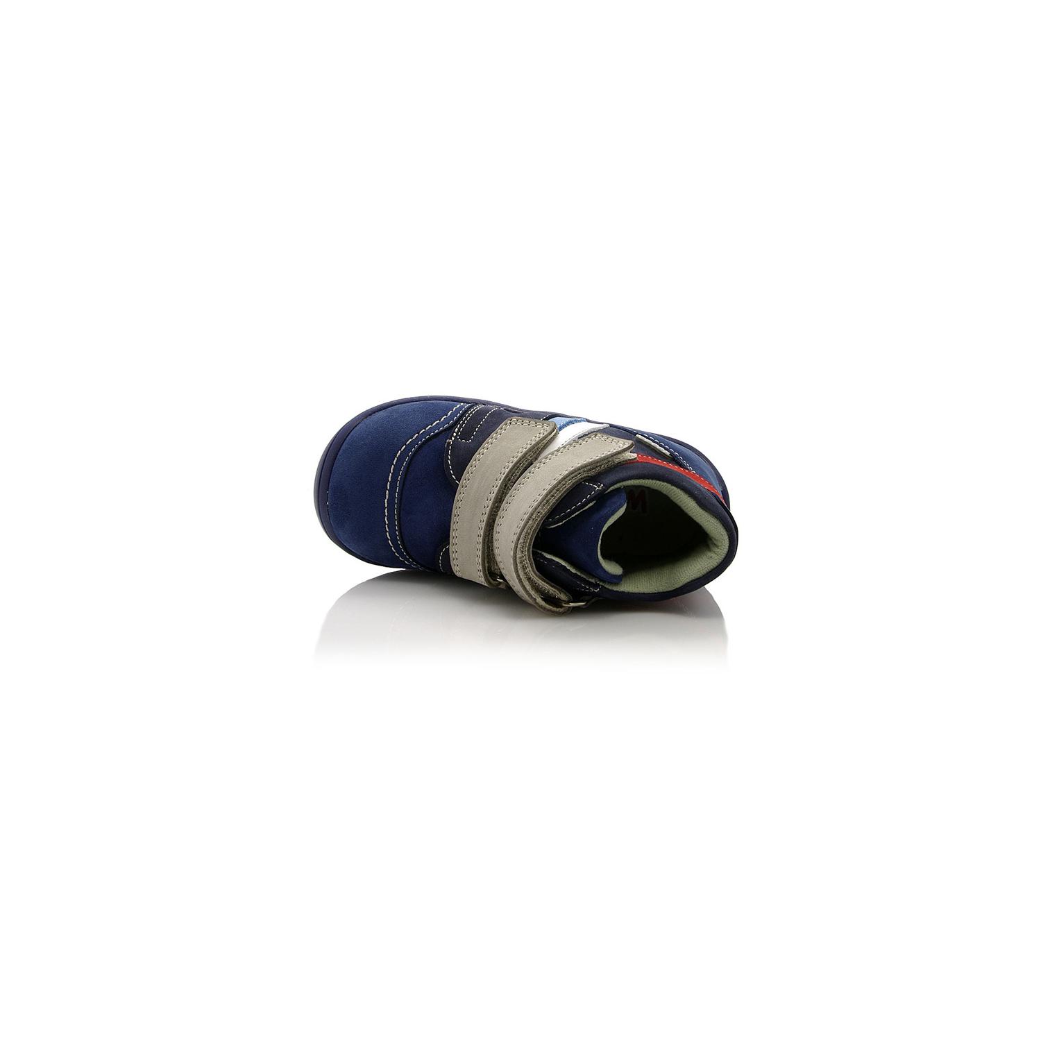 Спортивные ботинки синего цвета с разноцветными вставками. Сверху фиксируются двумя липучками, снаружи жирный нубук, внутри - флис. Есть высокая твердая пятка и супинатор.