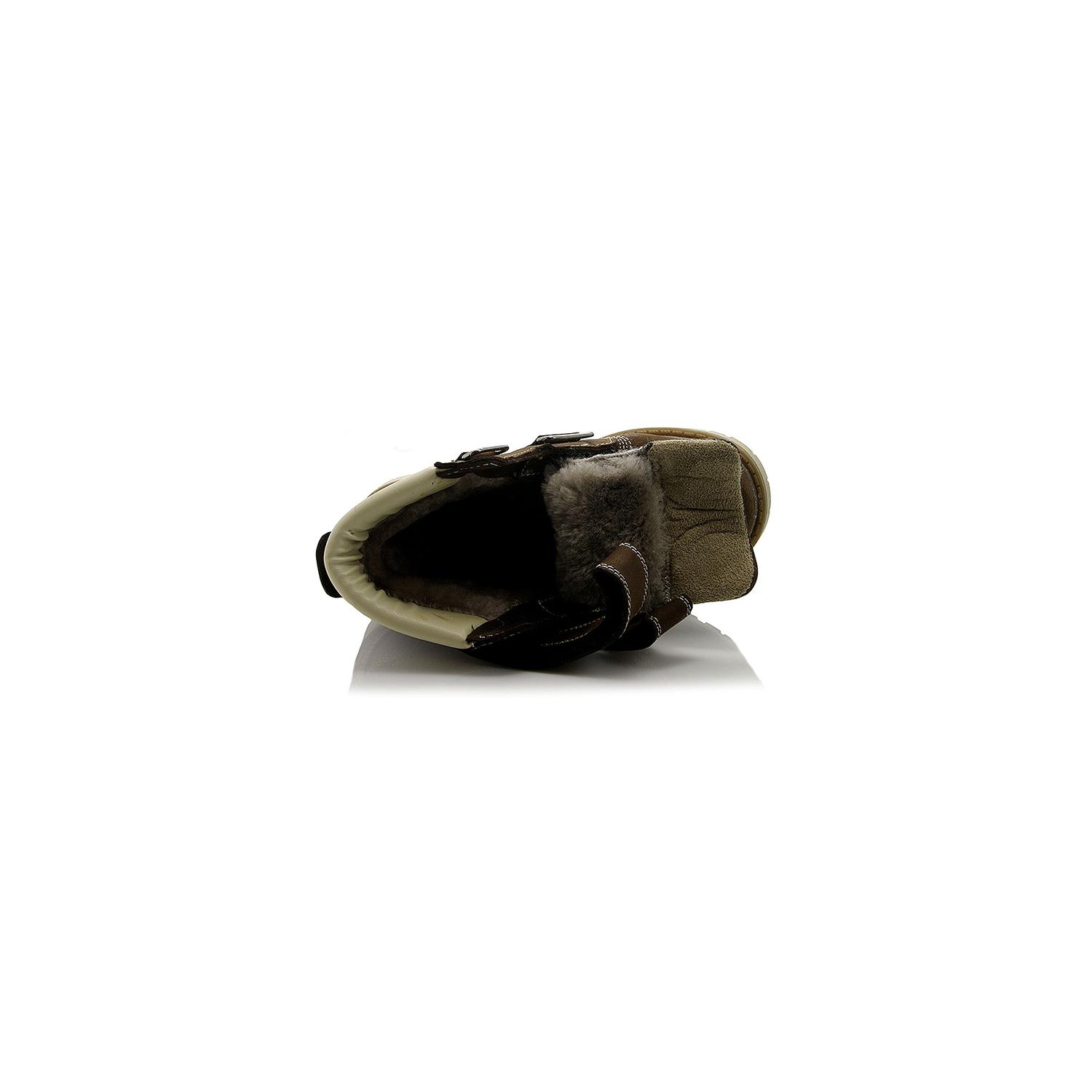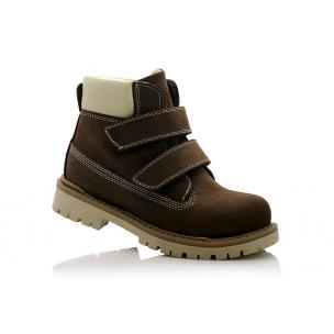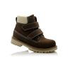 Зимние ботинки темно-коричневого (шоколадного) цвета. Сверху фиксируются двумя липучками. Снаружи жирный нубук, внутри натуральный мех - цигейка. Высокая твердая пятка и тракторная не скользящая подошва.