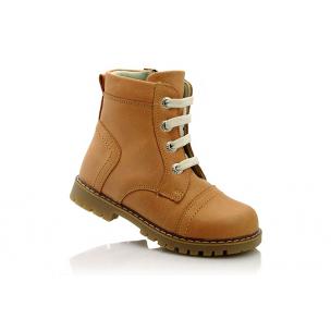 Ботинки рыжего (абрикосового) цвета. Сверху фиксируются шнурками, сбоку на молнии. Снаружи кожа (жирный нубук), внутри утепленные флисом. Высокая твердая пятка, супинатор и тракторная не скользящая ортопедическая подошва.