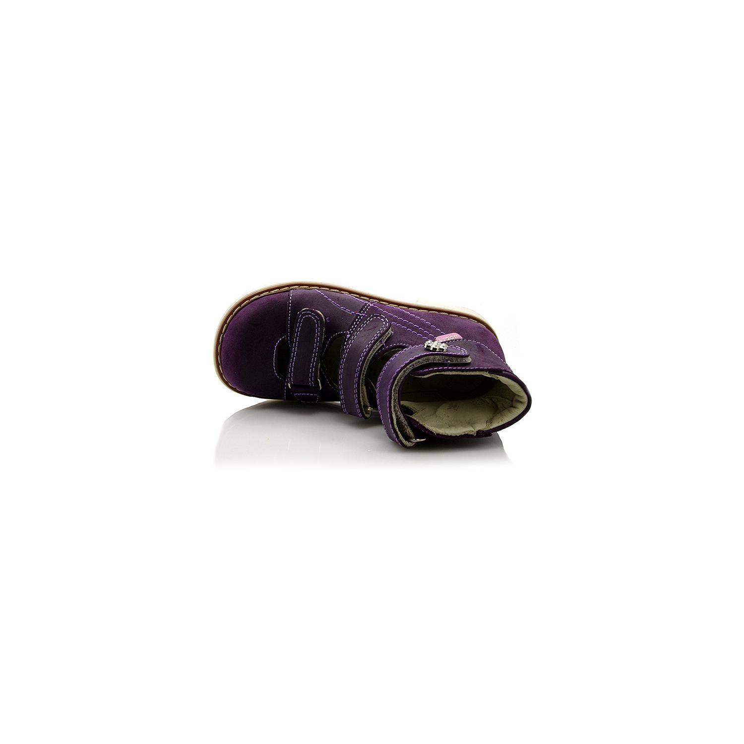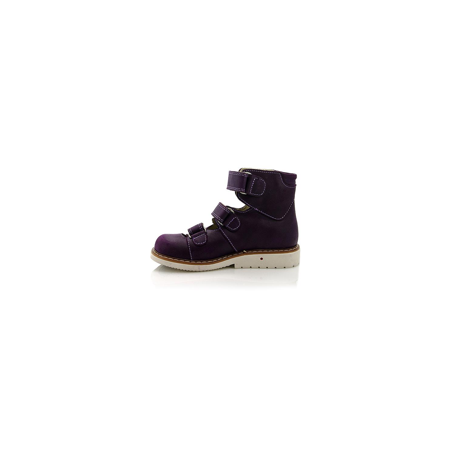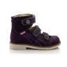 Босоножки ортопедические фиолетового цвета (с высоким берцем) и закрытым носком. Сверху фиксируются тремя липучками. Снаружи - жирный нубук, внутри кожаные. Завышенная твердая пятка, супинатор и ортопедический каблук Томаса.