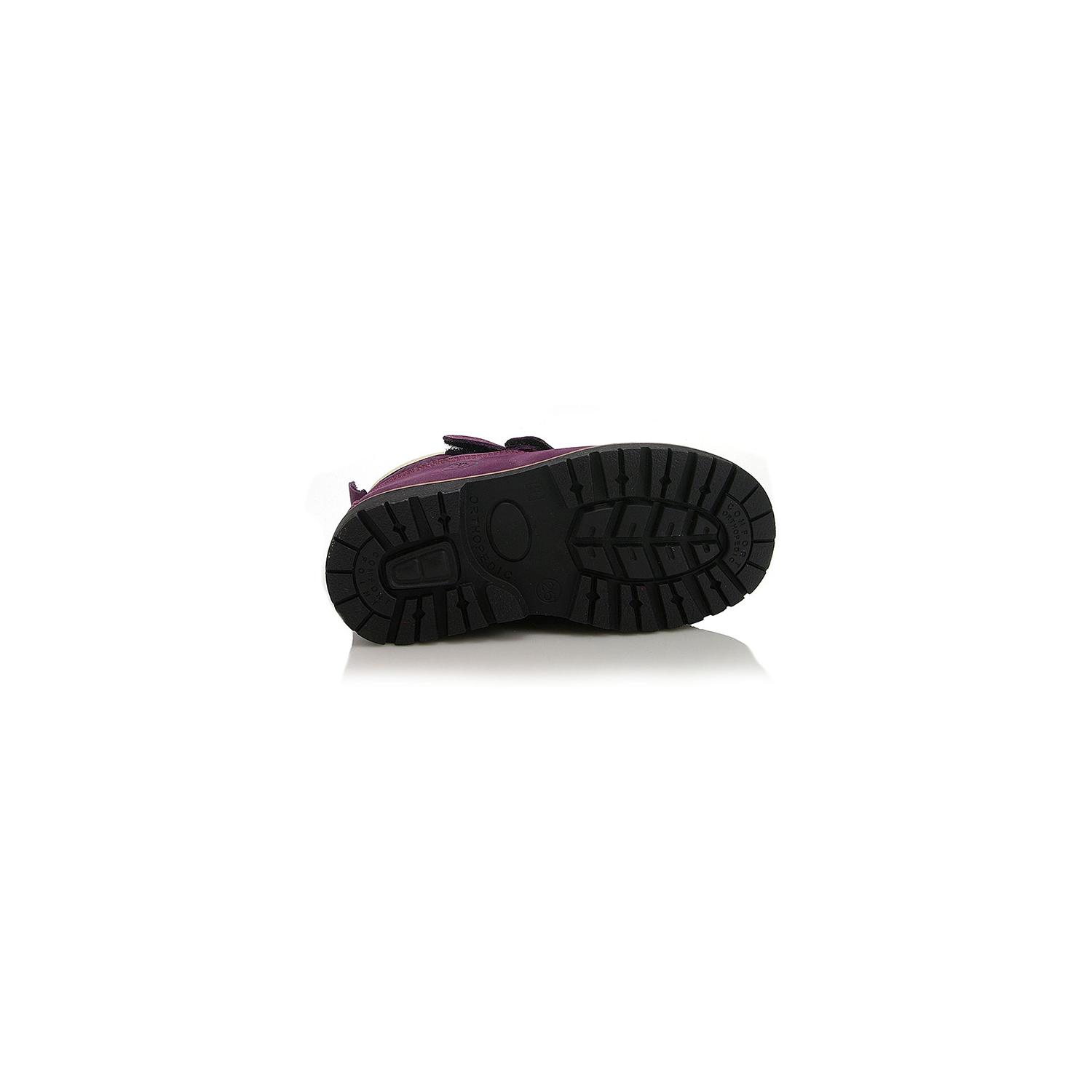 Зимние ботинки фиолетового цвета. Сверху фиксируются двумя липучками. Снаружи нубук, внутри натуральный мех - цигейка. Высокая твердая пятка, супинатор и ортопедическая не скользящая подошва.