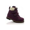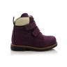 Зимние ботинки фиолетового цвета. Сверху фиксируются двумя липучками. Снаружи нубук, внутри натуральный мех - цигейка. Высокая твердая пятка, супинатор и ортопедическая не скользящая подошва.