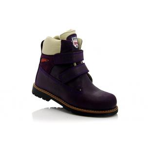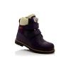 Зимние ботинки фиолетового цвета. Сверху фиксируются двумя липучками. Снаружи жирный нубук, внутри натуральный мех - цигейка. Высокая твердая пятка, супинатор и ортопедическая не скользящая подошва.