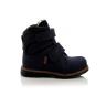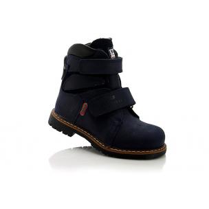 Зимние ботинки темно-синего цвета. Сверху фиксируются двумя липучками. Снаружи жирный нубук, внутри натуральный мех - цигейка. Высокая твердая пятка, супинатор и ортопедическая не скользящая подошва.