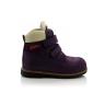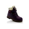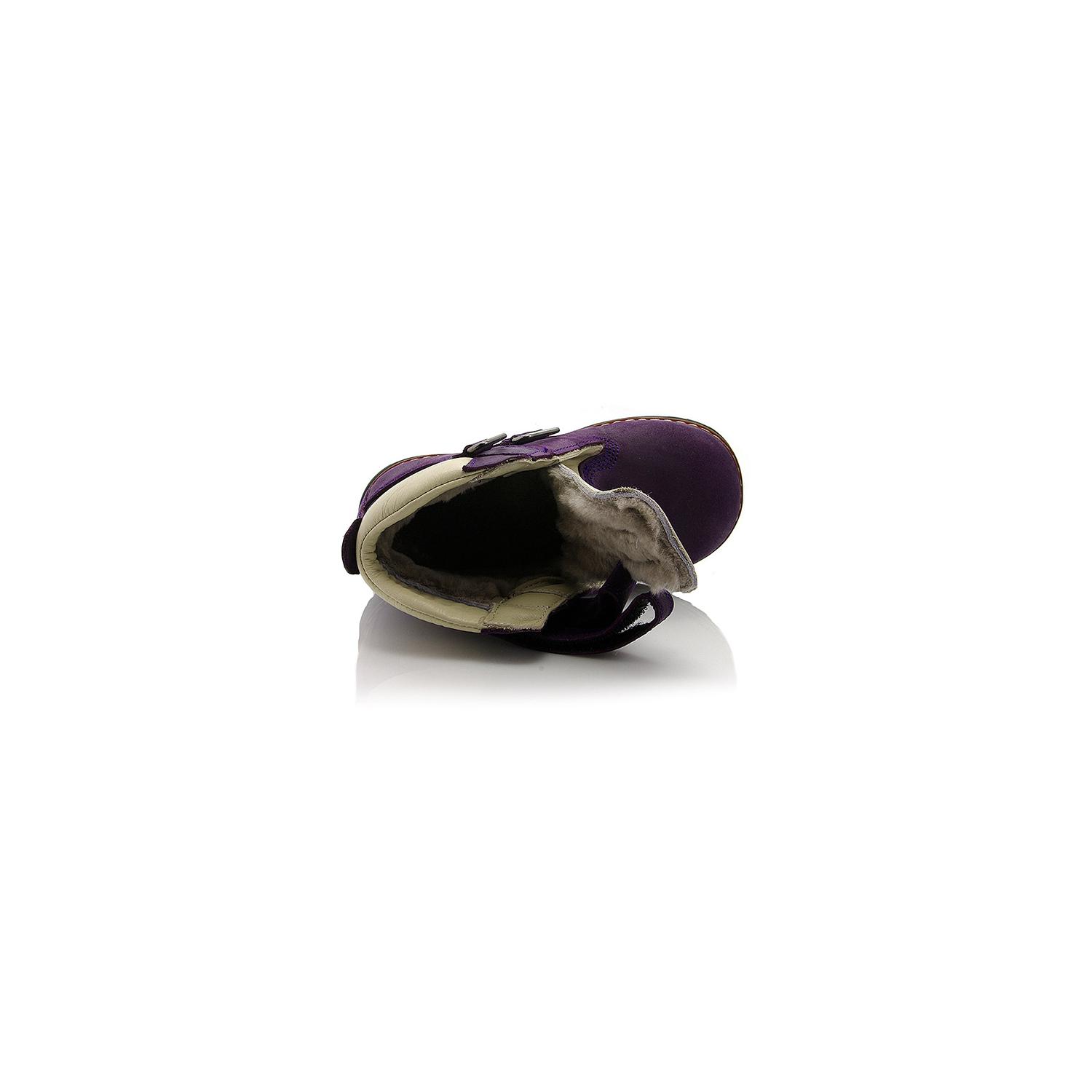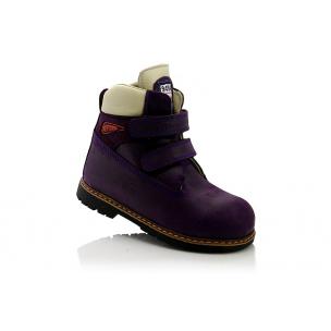 Зимние ботинки фиолетового цвета. Сверху фиксируются двумя липучками. Снаружи жирный нубук, внутри натуральный мех - цигейка. Высокая твердая пятка, супинатор и ортопедическая не скользящая подошва.